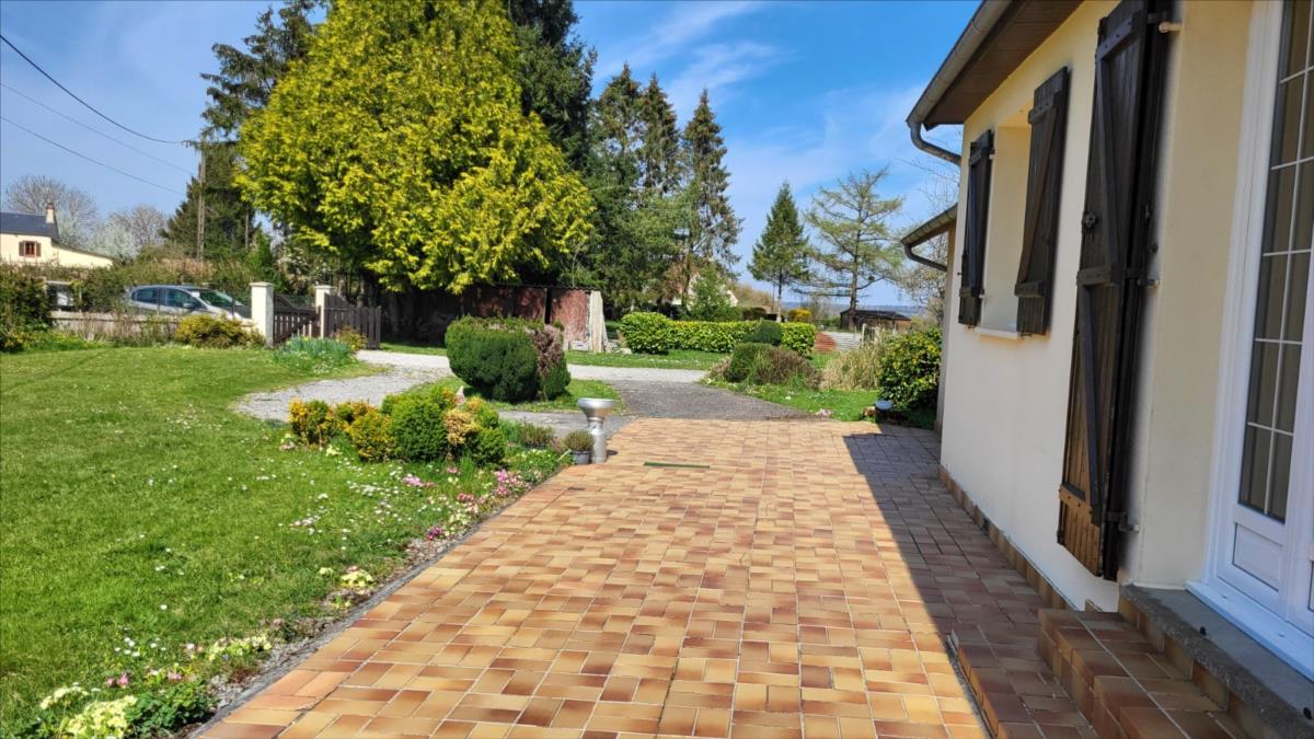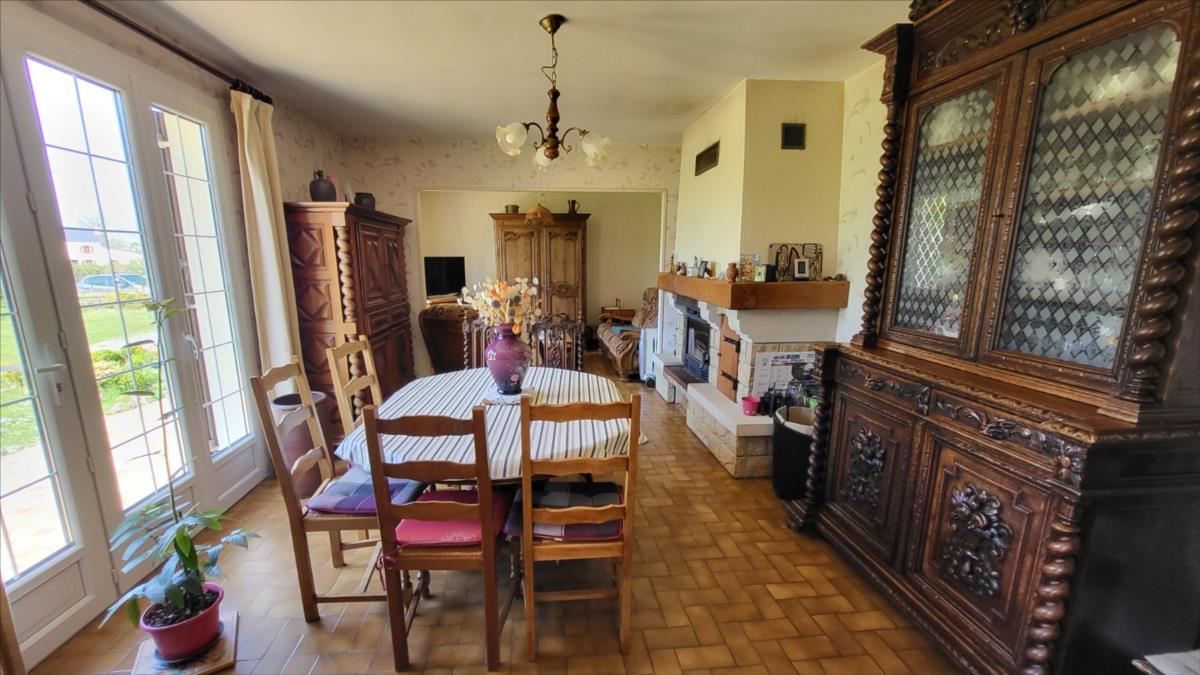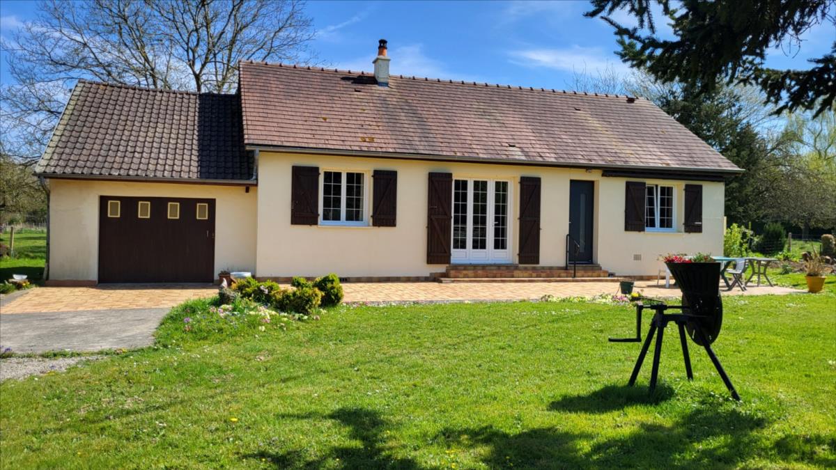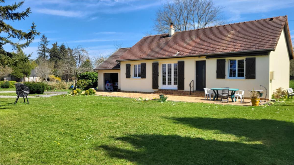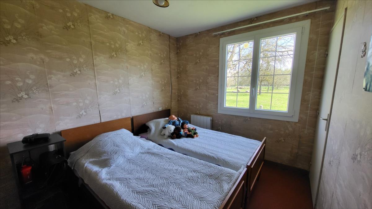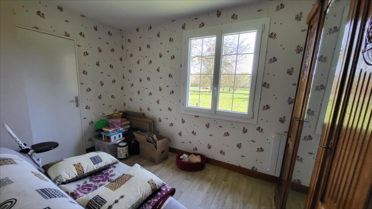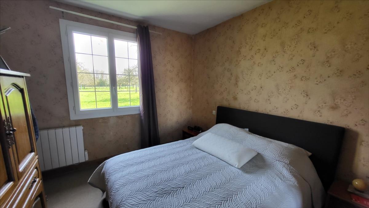 Propriété sur 3ha plats avec dépendances en campagne, au calme. Pavillon de plain-pied bien entretenu : entrée avec placard, séjour avec cheminée équipée d'un insert, cuisine aménagée rustique, couloir desservant trois chambres, salle de bains, wc séparés. Garage attenant avec point d'eau. Trois dépendances dont un ancien four à pain.
