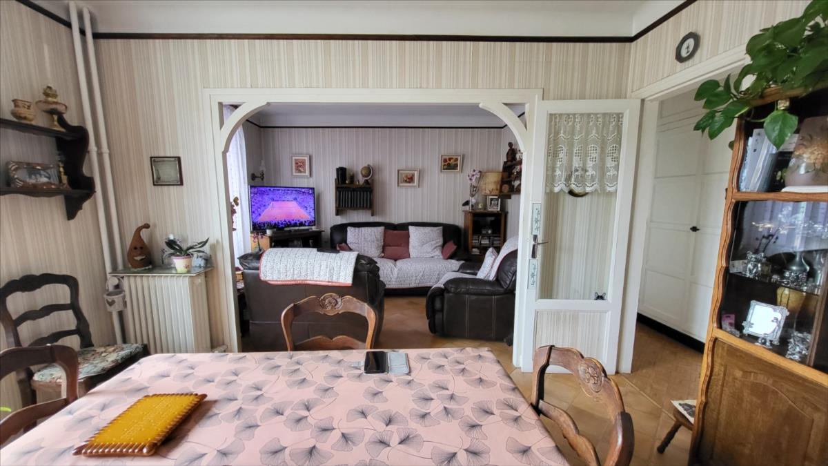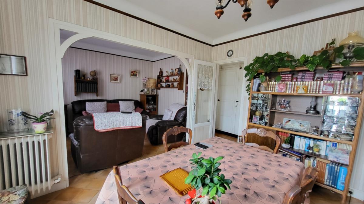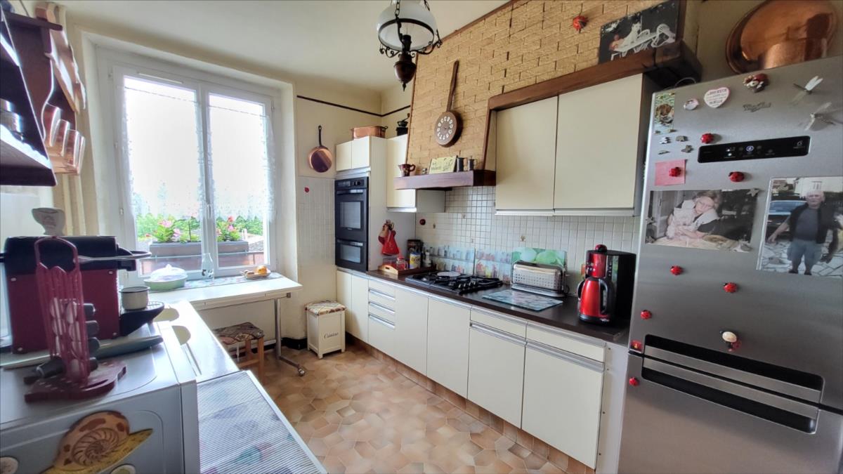 En centre ville avec tous commerces, immeuble comprenant :Au rez-de-chaussée local commercial d'environ 100 m² en bon état comprenant une pièce avec ancienne vitrine, dégagement avec wc et quatre pièces, réserve ; au 1er étage et par accès indépendant : appartement loué d'environ comprenant : au rez-de-chaussée : deux garages cimentés; entrée avec escalier donnant sur le 1er étage : cuisine aménagée, séjour, salle de bains avec wc ; à l'étage : couloir et dégagement avec douche, deux chambres, bureau ; chauffage au gaz de ville; sous-sol avec chaudière au gaz ;