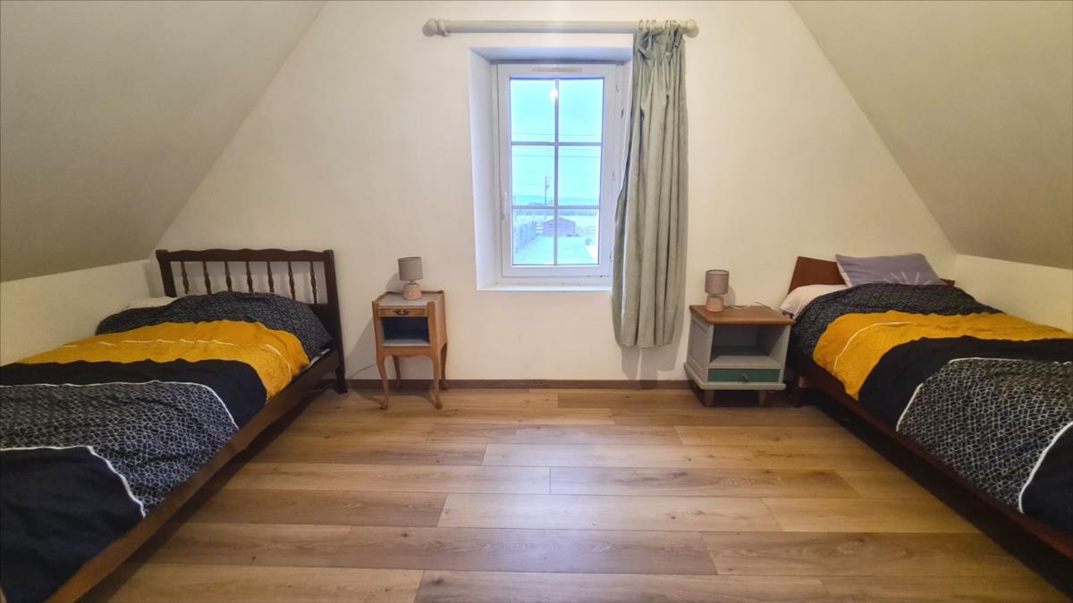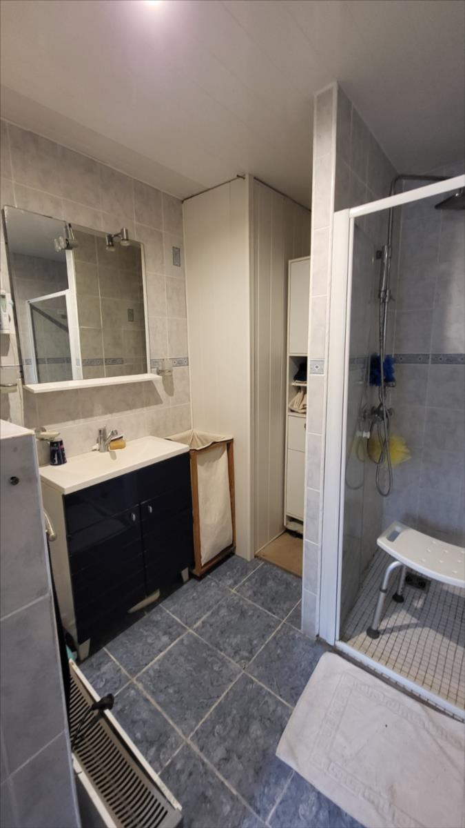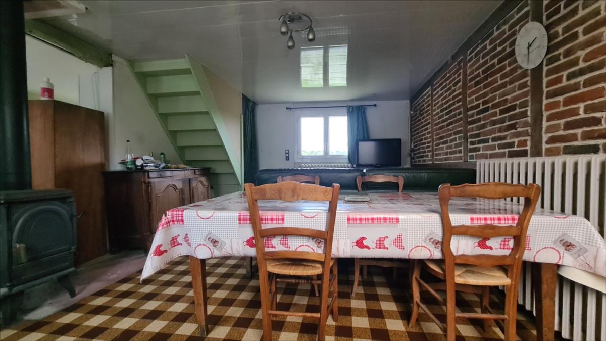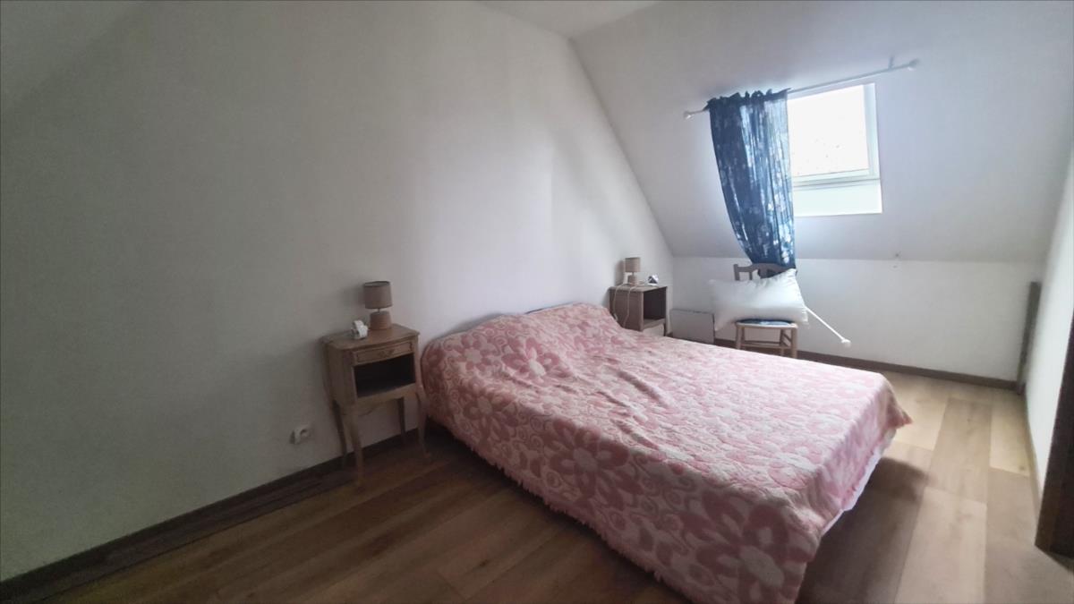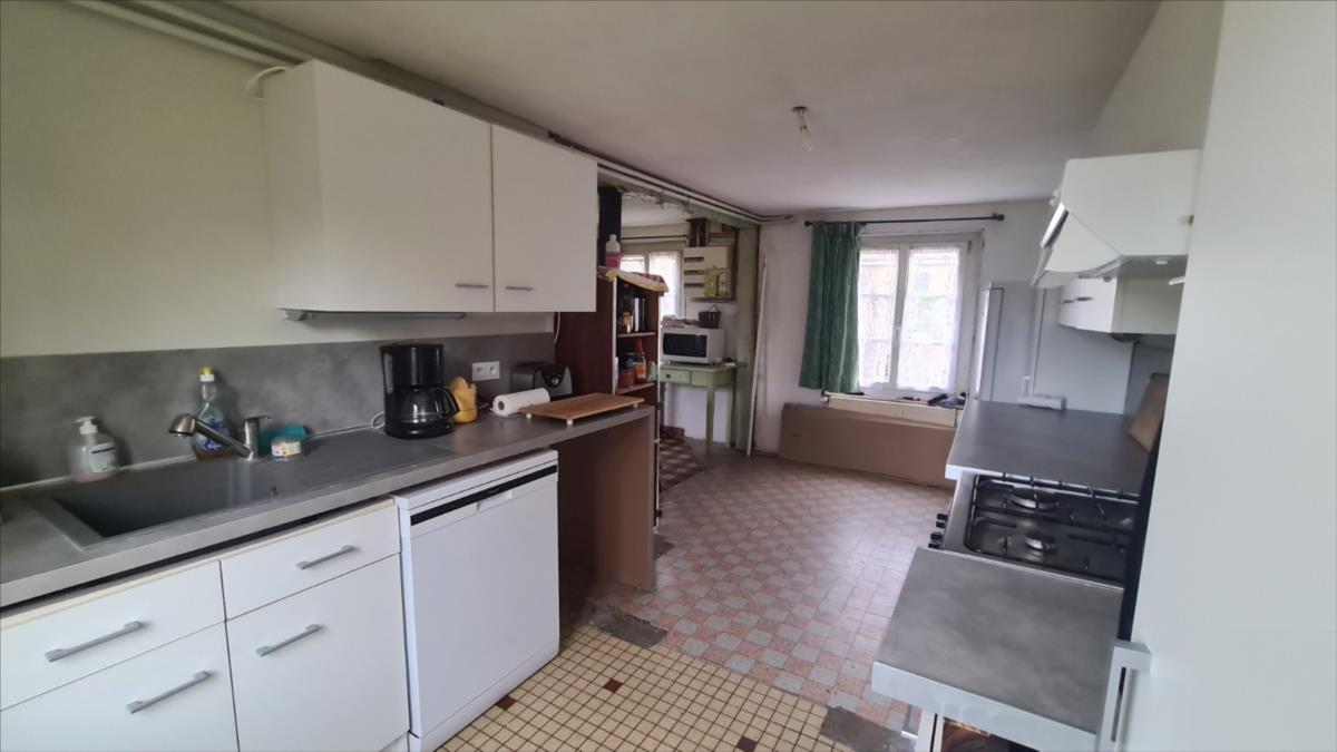 En sortie de petite ville avec commerces, dans un quartier au calme, maison comprenant : cuisine aménagée, séjour avec poêle à bois, dégagement, deux chambres, salle de douche avec douche à l'italienne, wc séparés ; à l'étage : petit palier desservant deux chambres mansardées et wc broyeur avec lave-mains. Belles dépendances en brique et pierre; garage.