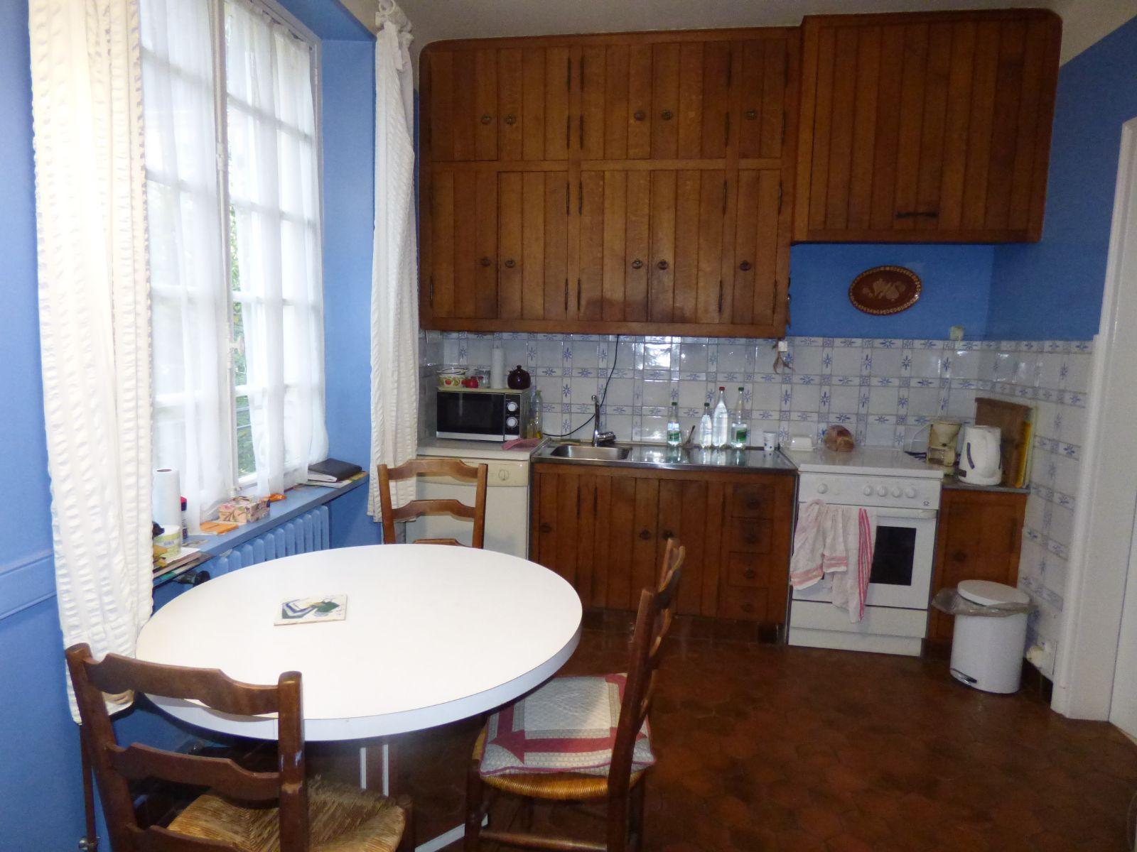 Maison construite en parpaings, briques et pierre sous ardoises et tuiles, comprenant :