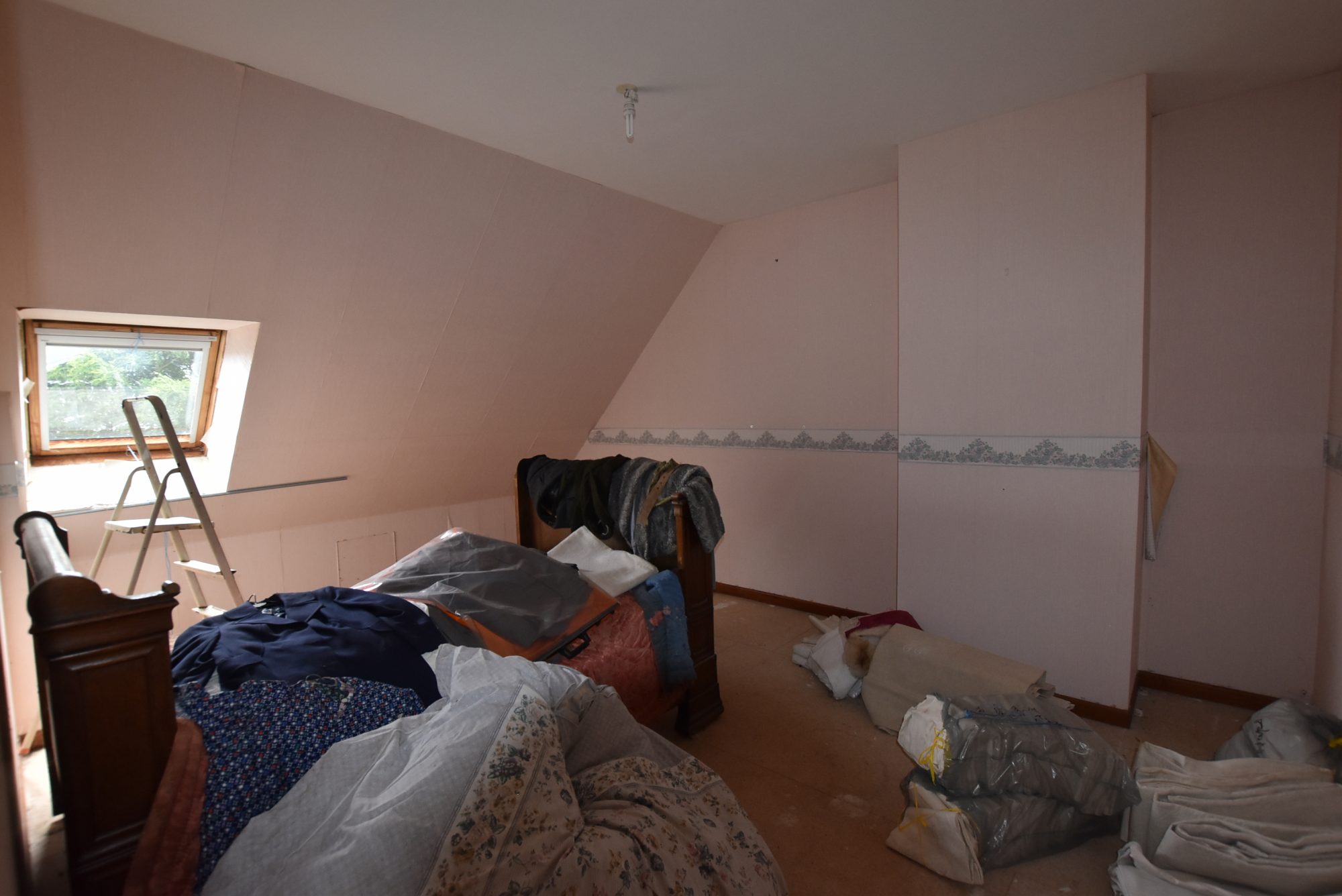 A l'étage : un grand pallier desservant deux chambres et une autre pièce.