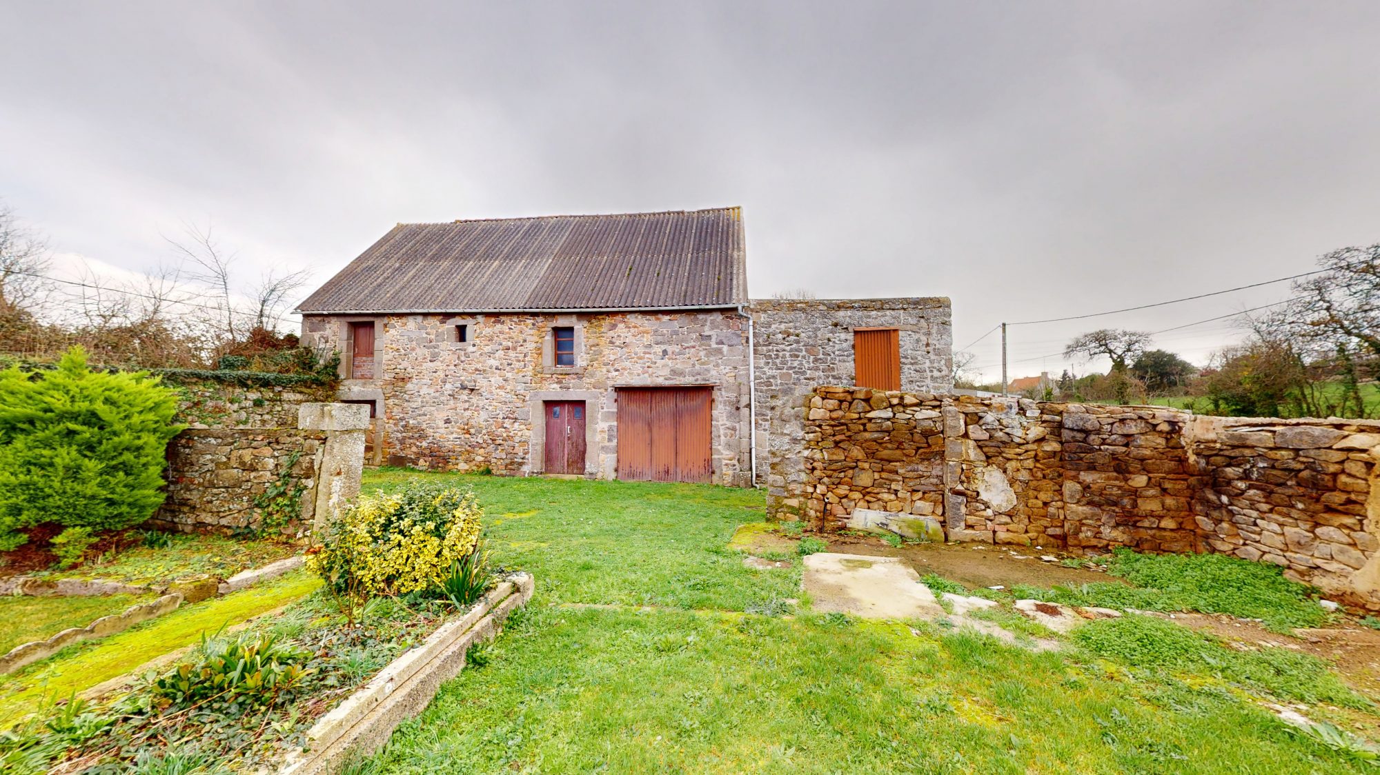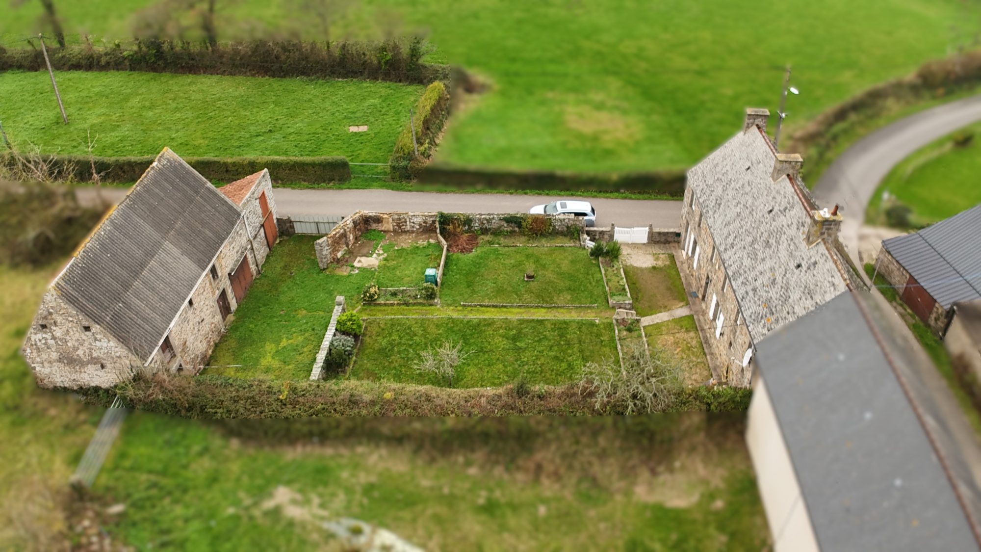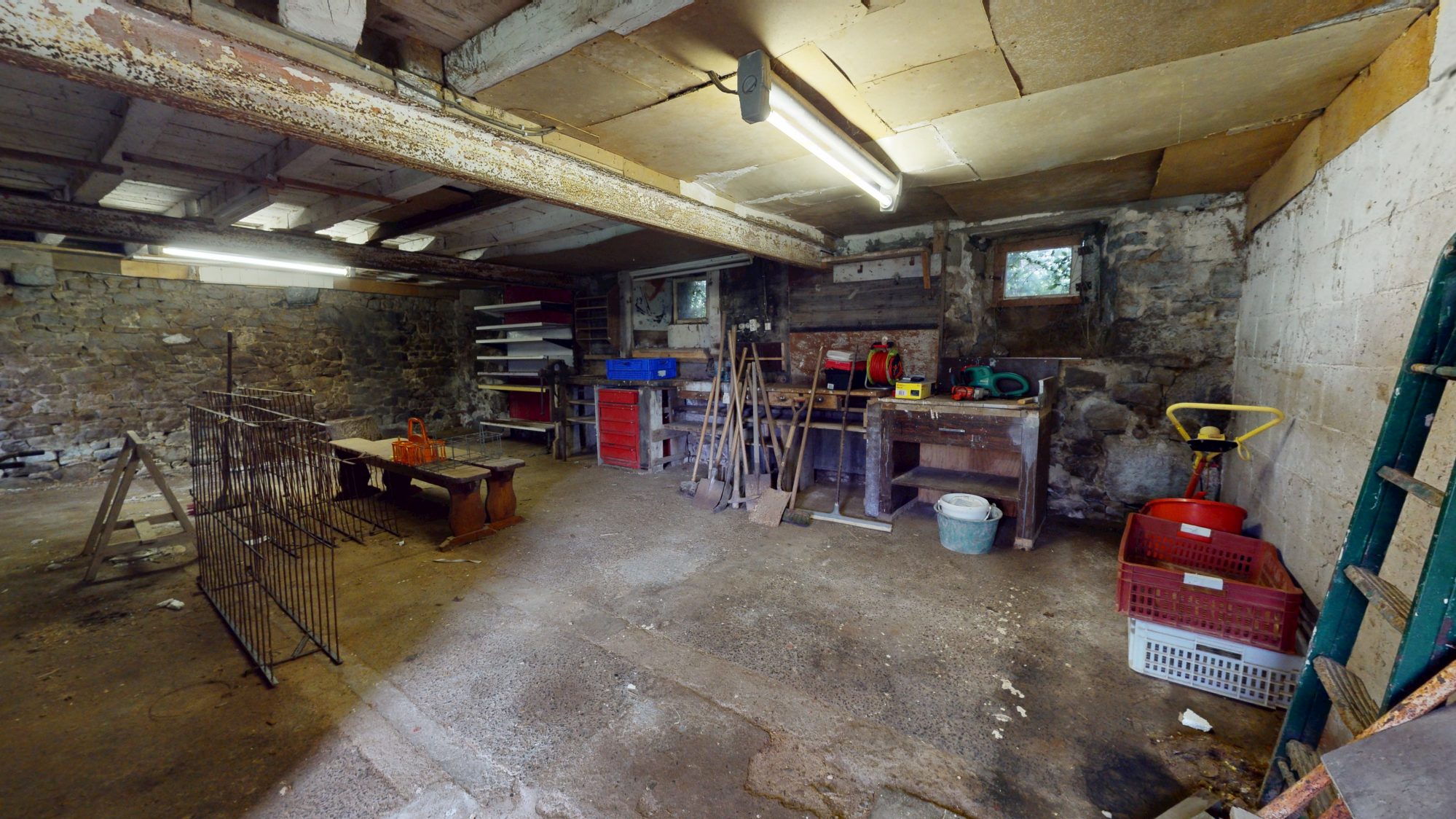 Jardin à l'arrière avec dépendance en pierres comprenant ateliers, garages et grenier au-dessus.