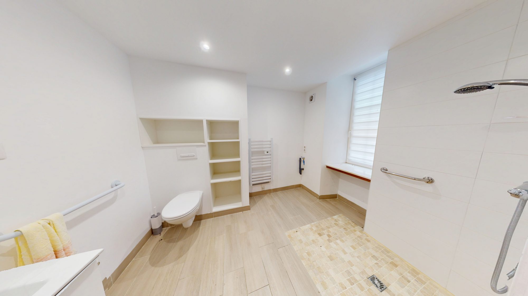 - au rez-de-chaussée : séjour, chambre avec salle d'eau et WC, cuisine, buanderie avec WC, salle d'eau ;