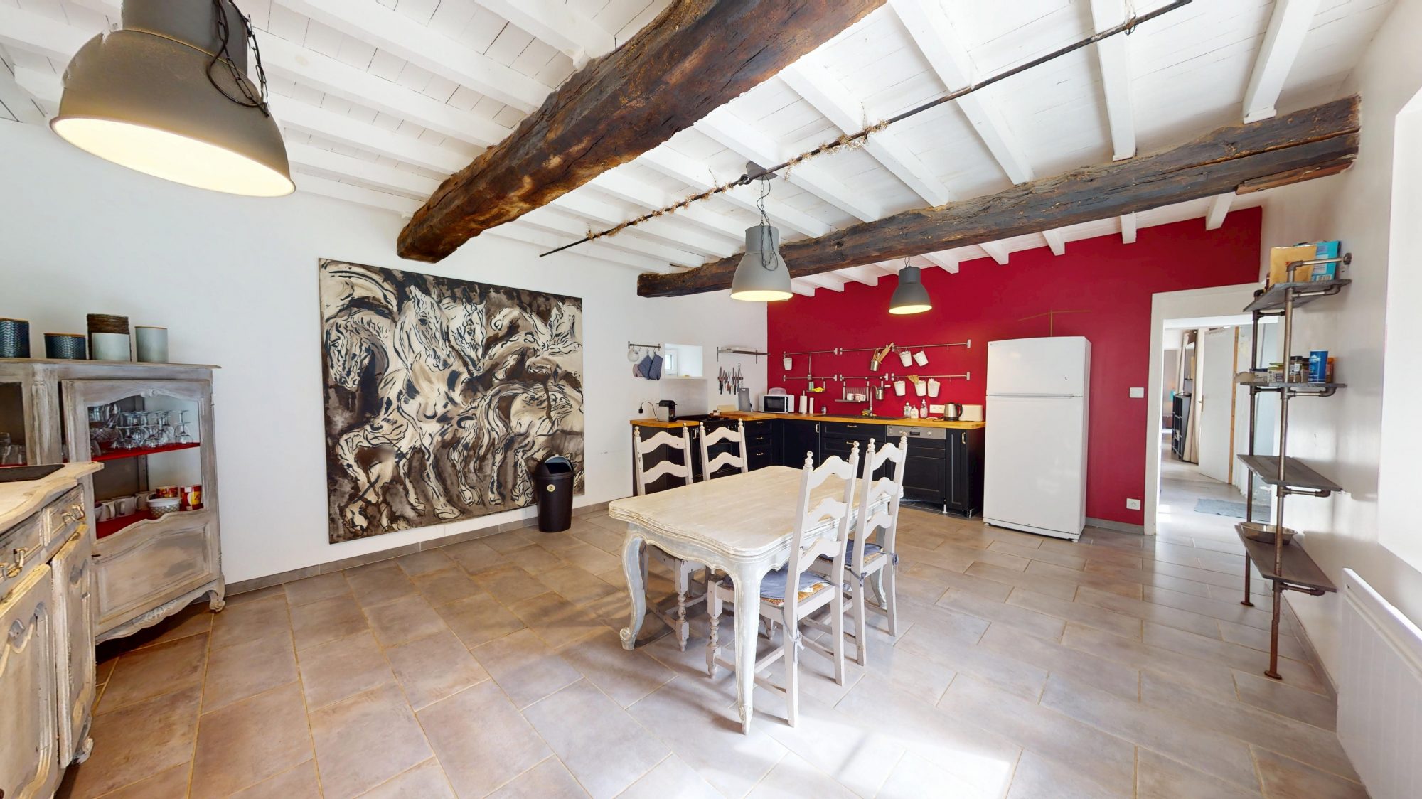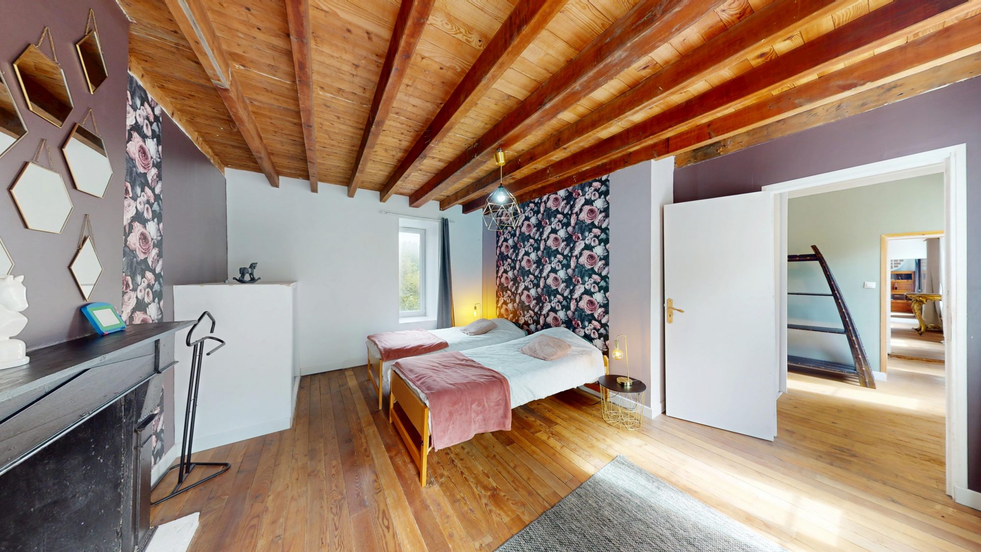- au rez-de-chaussée : entrée, WC, salle à manger-cuisine ouverte, salon, chambre avec salle de bains privative avec WC ;