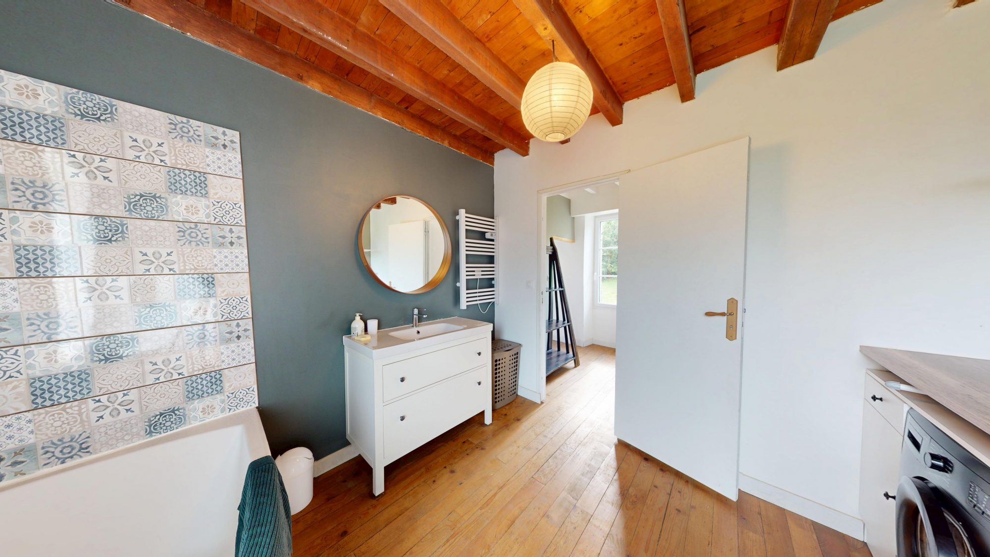 - au 1er étage : trois chambres, salle de bains-buanderie avec WC ;