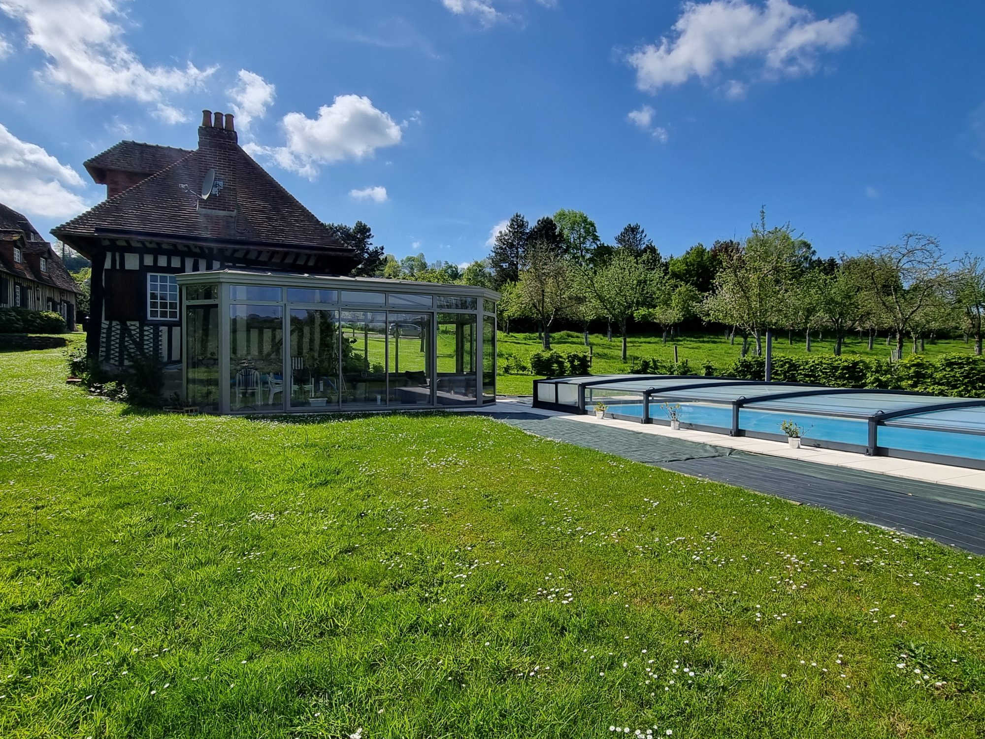 Belle propriété typiquement augeronne édifiée sur un terrain de 9,2ha (herbage, verger) avec accès à la rivière composée d’une maison principale datant du 16/17ème d’environ 200m² avec 4 chambres, une maison d’amis de 130m² avec véranda et 3 chambres et d’une maison de gardien louée de 90m² avec 2 chambres.