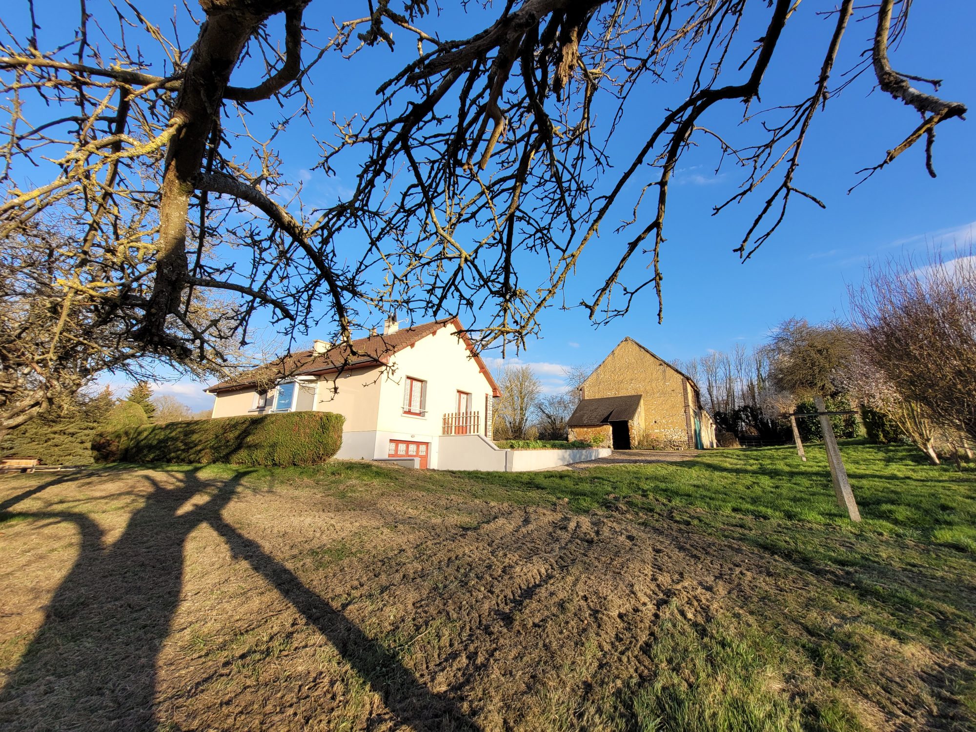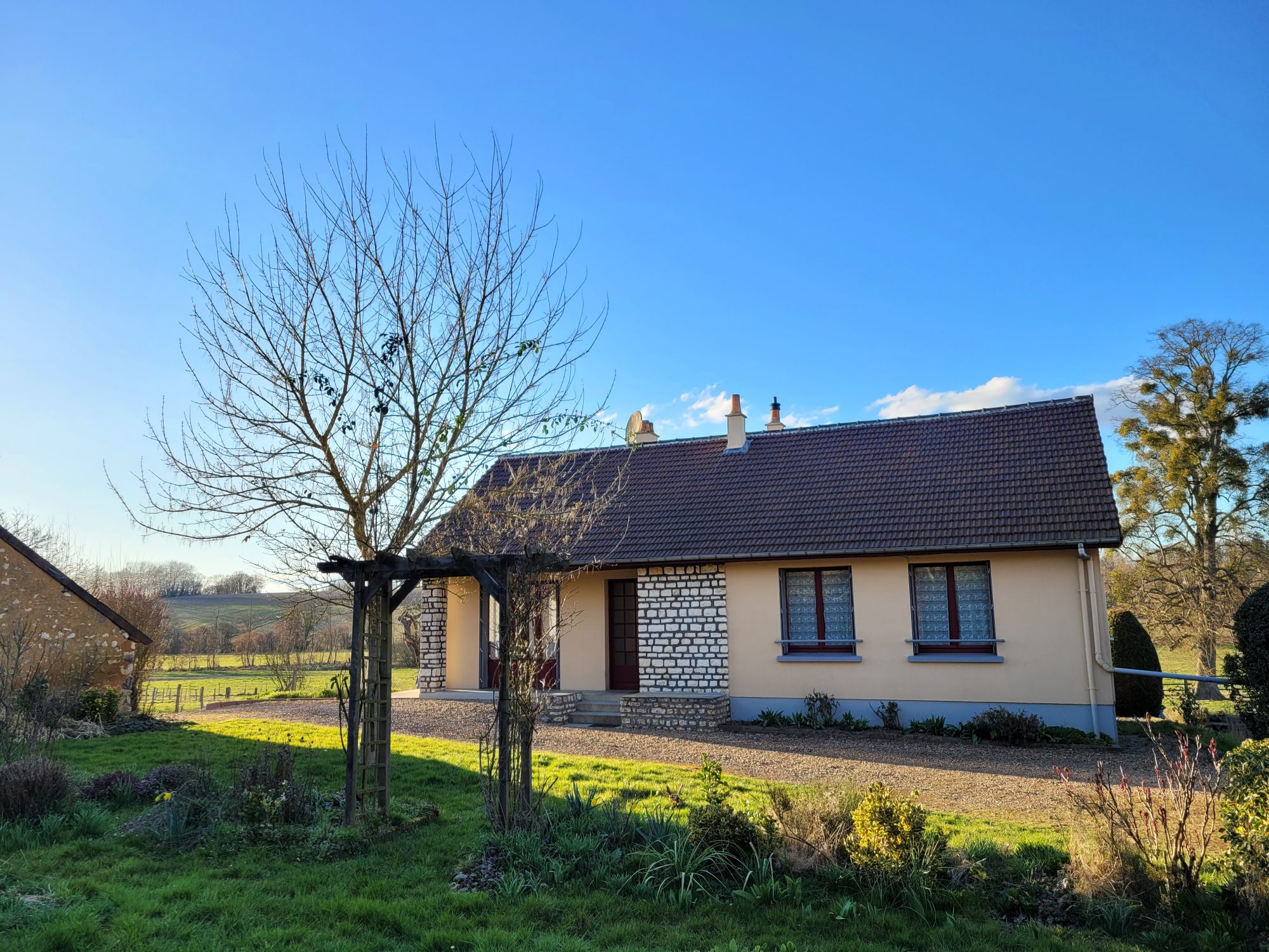 En hameau, proche de Condé sur Huisne, pavillon construit fin des années 1960 composé d’une entrée, salon-séjour, cuisine, couloir avec placards, salle d’eau, WC et trois chambres. Grenier en partie aménageable. Sous-sol intégral à usage de garage, cellier, chaufferie, atelier et cave. Petite véranda sur l’arrière. Gros œuvre en bon état, rafraichissement à prévoir et isolation thermique. Dépendance en pierre composée d’une ancienne habitation comprenant trois pièces. Attenant une grange, ancienne étable et garage. Greniers, cave. Travaux de couverture à prévoir. L’ensemble sur un terrain en nature d’agrément, jardin et prairie de 6415m2. Autre terrain de l’autre côté du chemin d’accès de 756m2. Belle vue dégagée sur la campagne environnante. Les informations sur les risques auxquels ce bien est exposé sont disponibles sur le site Géorisques : georisques.gouv.fr