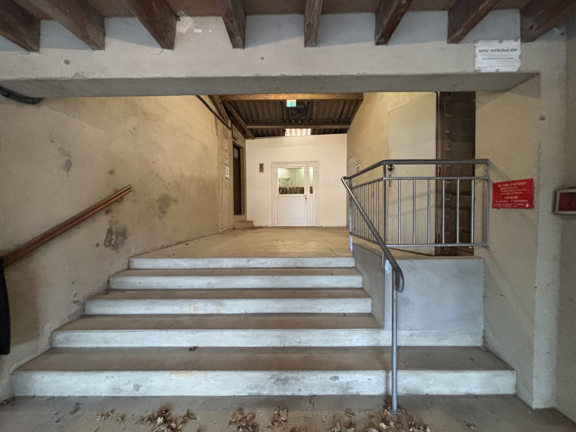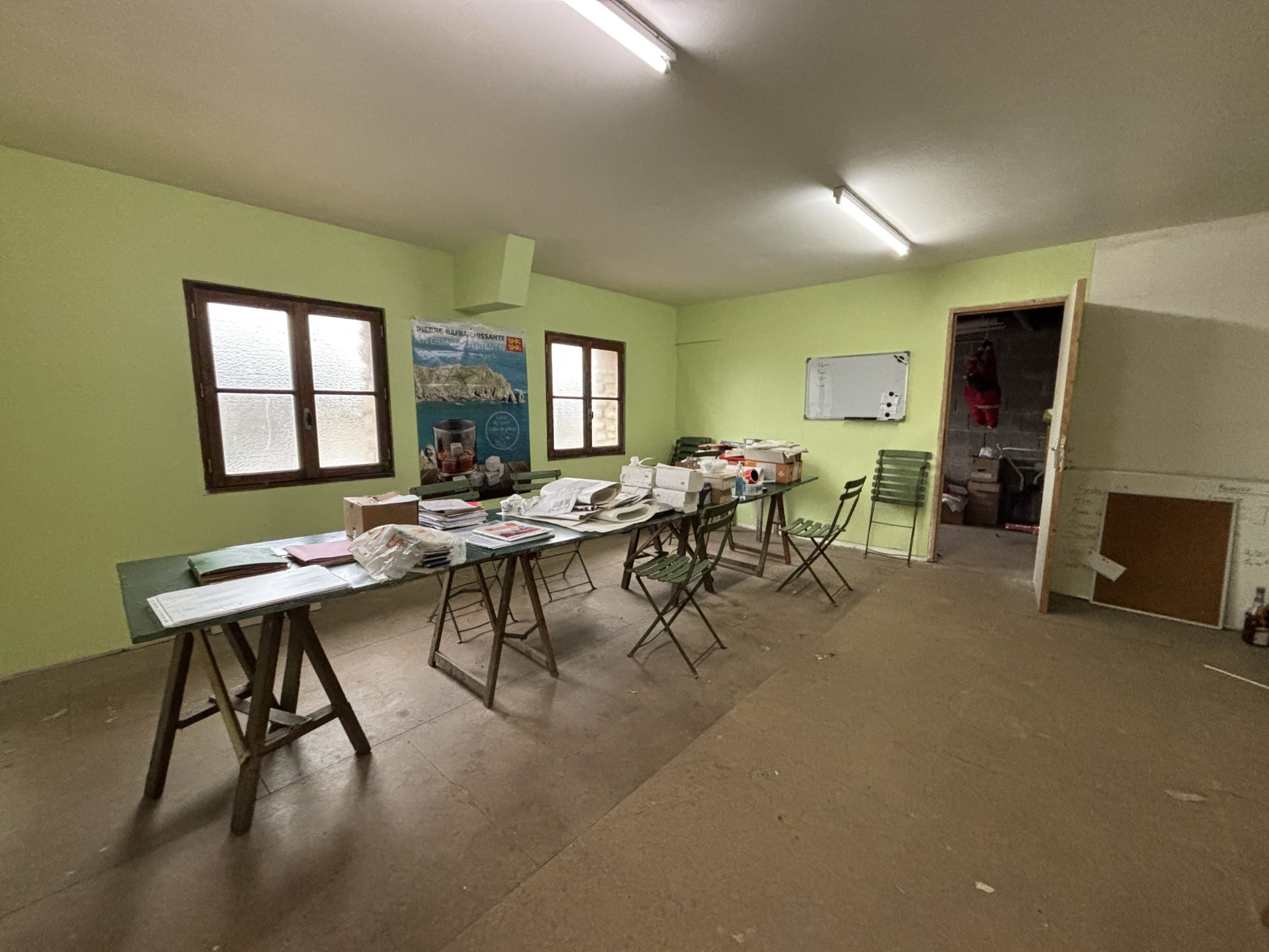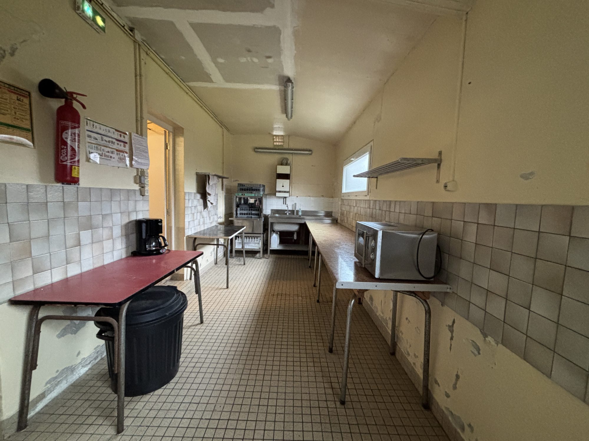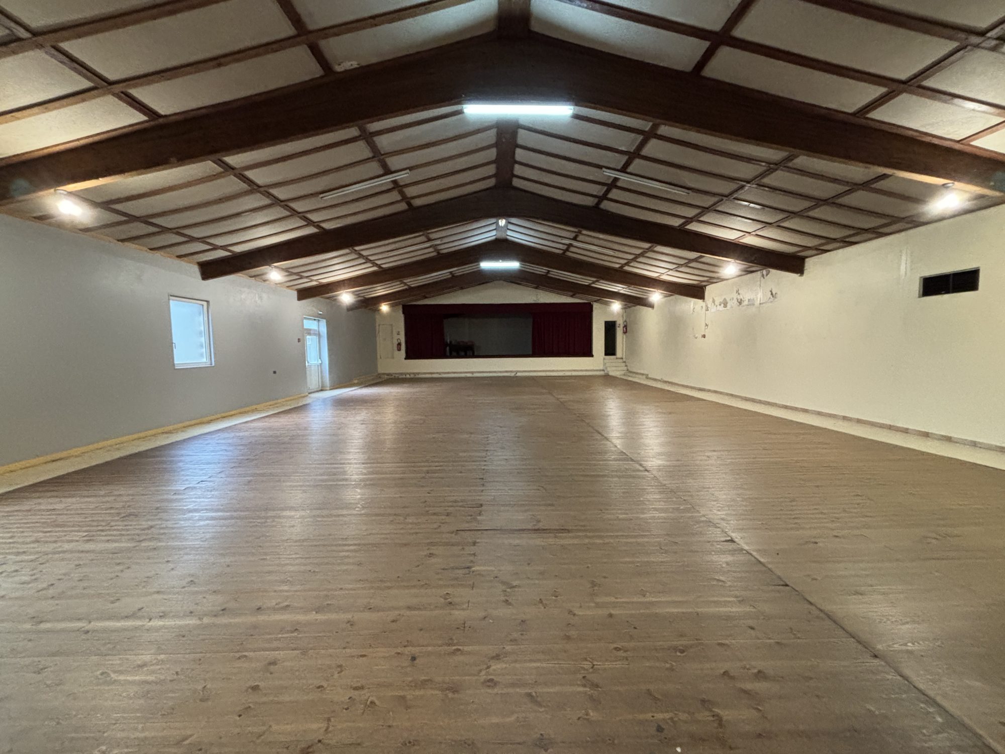 Salle de réception comprenant : - Rez-de-Chaussée : hall d’entrée, grande salle, scène, arrière scène, cuisine, bar, sanitaires, arrière-salle, différentes pièces technique. - 1er étage : salle de réunion, pièce à usage de réserve Cour en longueur côte Sud-Ouest à usage de sortie de secours