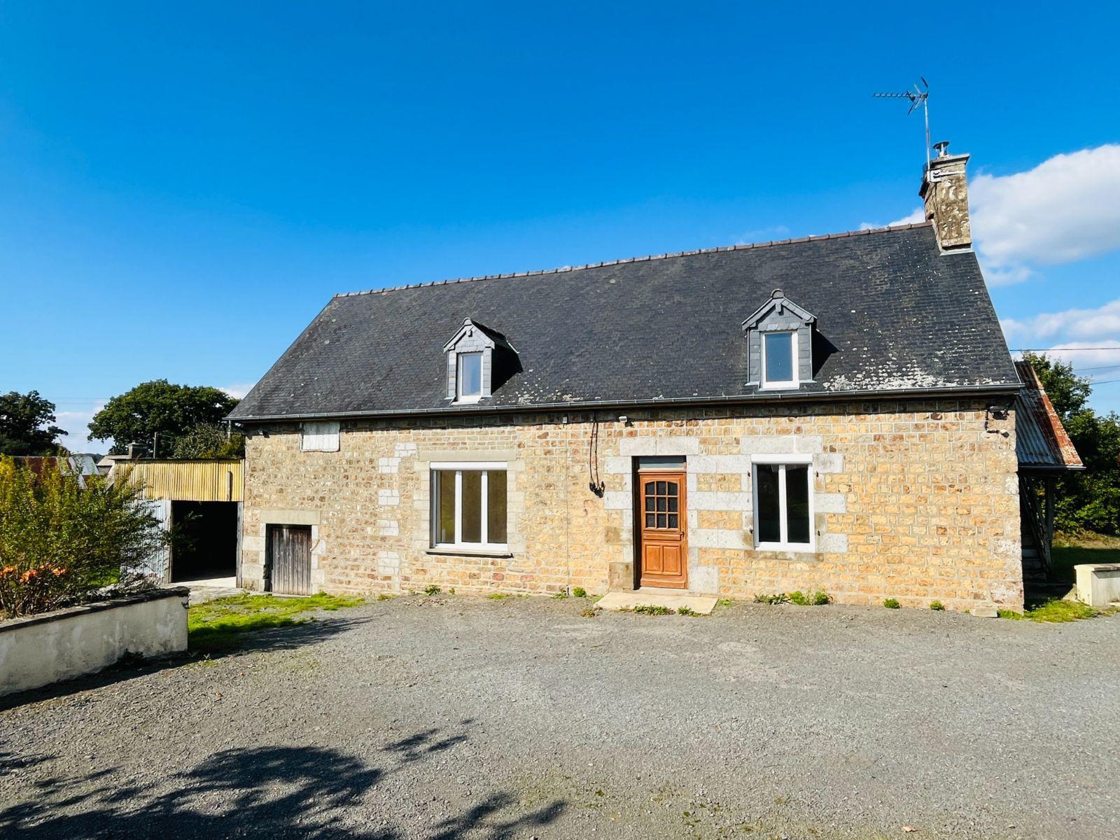 A vendre sur la commune de Le Mesnil-Rainfray, à 5 minutes de Juvigny-les-Vallées et à 15 minutes de Saint-Hilaire-du-Harcouët, en campagne dans un environnement calme au fond d'une impasse, maison en pierres sous ardoises de 71 m² habitables, comprenant : - au rez-de-chaussée : cuisine, séjour-salon avec cheminée ouverte, deux chambres dont une traversante, salle d'eau, wc, cave et garage en appentis sous tôles ; - à l'étage : chambre et grenier ; Ancienne boulangerie en pierres sous tôles et grange en pierres et parpaings sous tôles ondulées. Le tout sur un terrain d'environ 4 400 m².