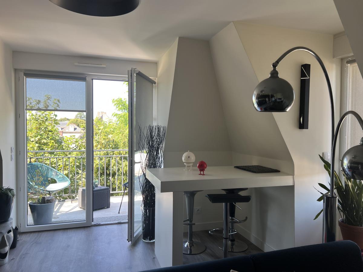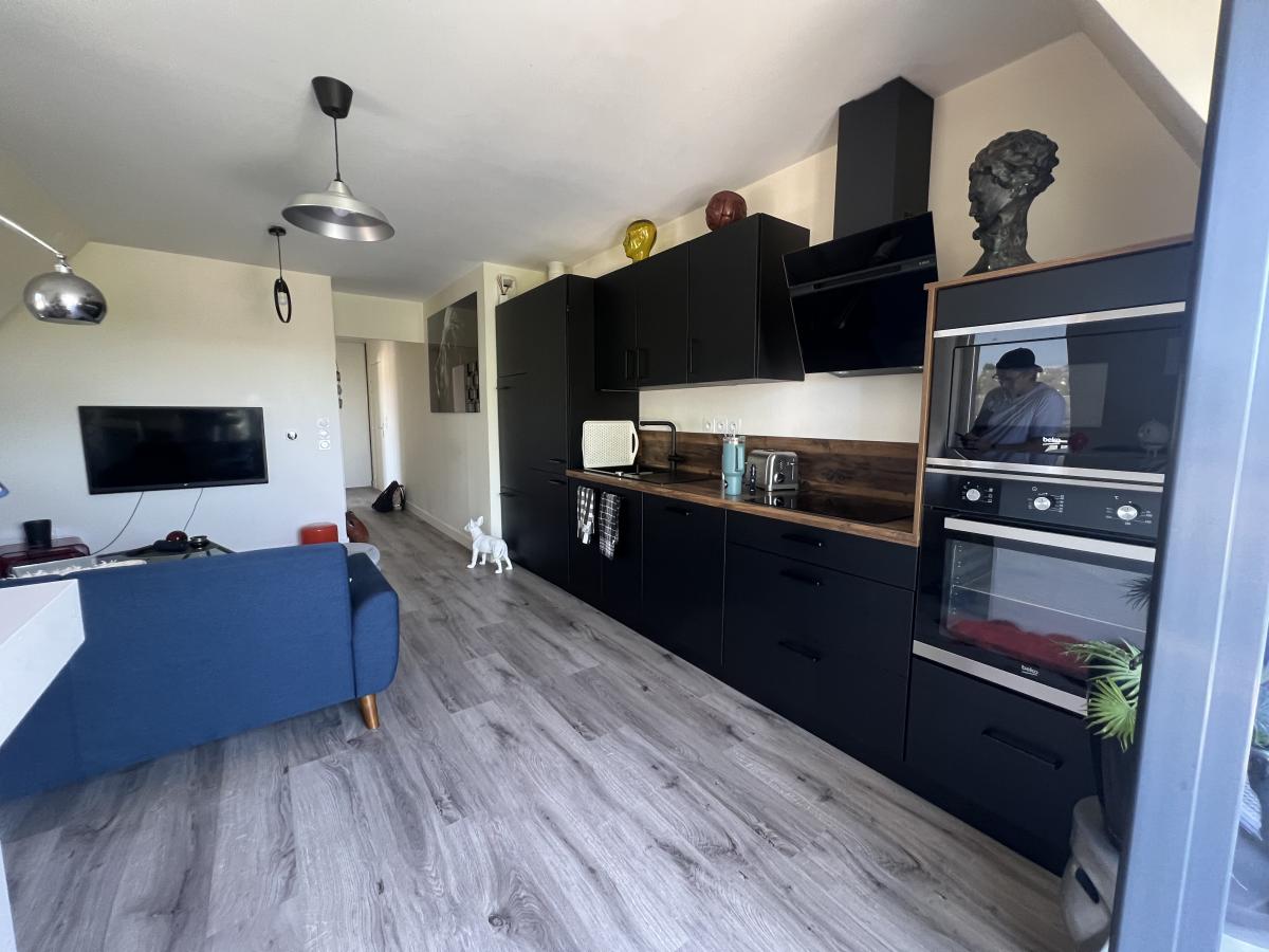 BRETTEVILLE SUR ODON - Proche commerces, dans résidence de Standing, magnifique 2 pièces de 52 m2, sis au dernier étage de la résidence avec ascenseur de plain pied, comprenant entrée avec placards, cuisine aménagée & équipée ouverte sur séjour, chambre avec dressing, salle d'eau avec wc buanderie. Normes PMR. Balcon SUD OUEST. Charges individuelle gaz. 80 € mensuel. Parking extérieur privatif. PARFAIT ETAT. DPE : B