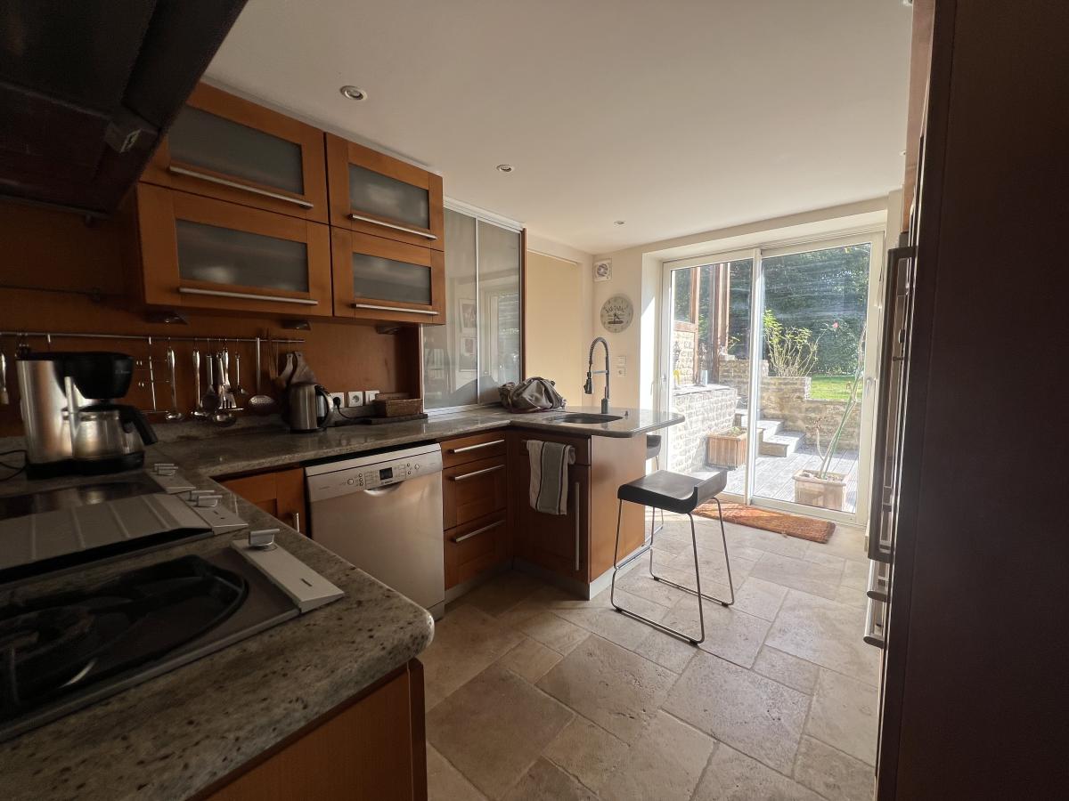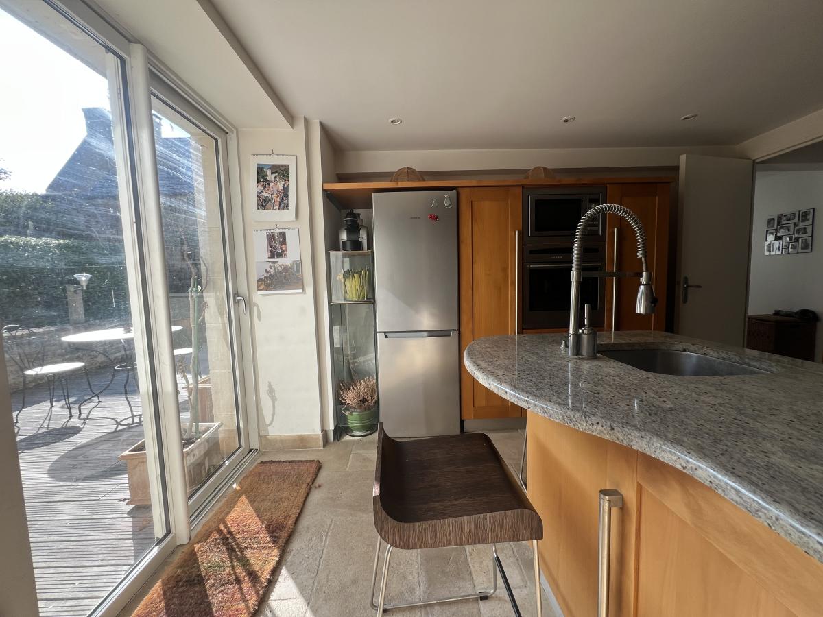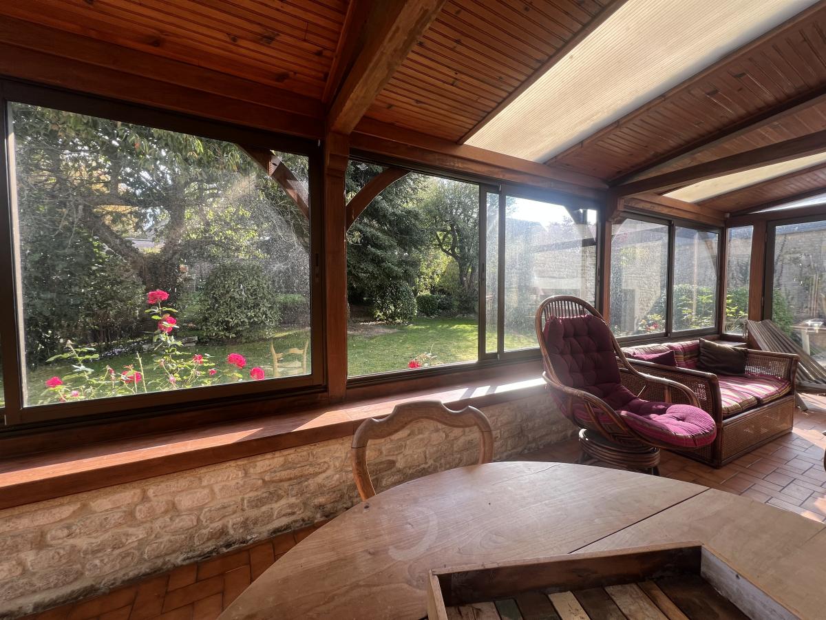 NORD OUEST DE CAEN - Commune du FRESNE CAMILLY - Ravissante maison en Pierre d'environ 150 m2, comprenant au rez de chaussée, séjour salon avec cheminée 35 m2, cuisine aménagée, chambre, salle d'eau récente, wc, véranda, buanderie, à l'étage, chambre avec salle de bains et bureau, studio avec espace cuisine, salon et chambre. Pièce de 25 m2 à aménager sous combles. Bon état général. Magnifique jardin clos sans vis à vis avec dépendance. Assainissement individuel à revoir. DPE : F