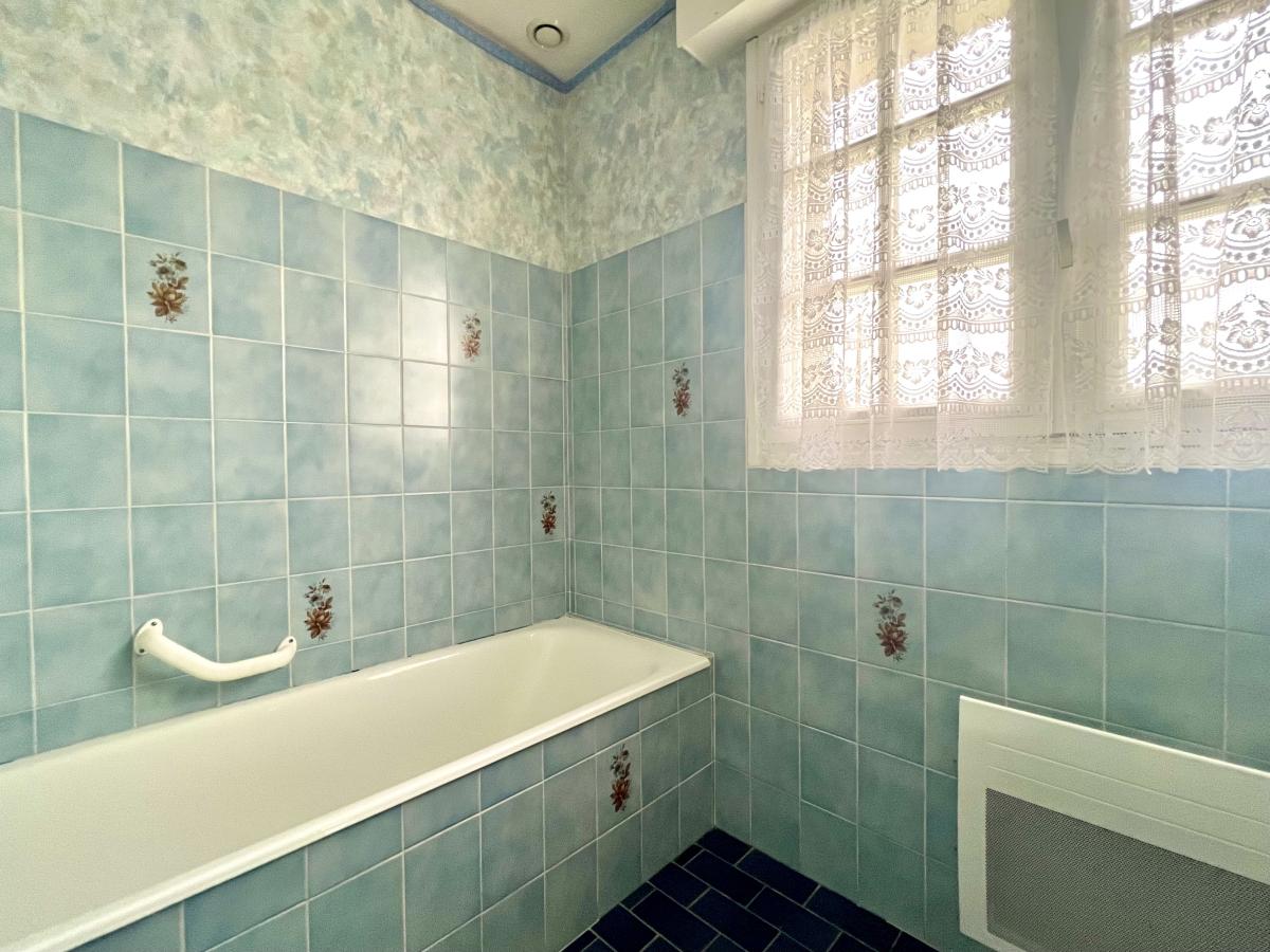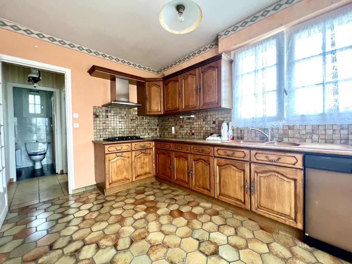 Maison individuelle de 122m2 habitable comprenant entrée, séjour-salon avec cheminée, cuisine, wc, salle de bains, chambre. A l’étage, palier, trois chambres, wc, salle de bains. Sous-sol complet avec garage. Terrain de 600m2.