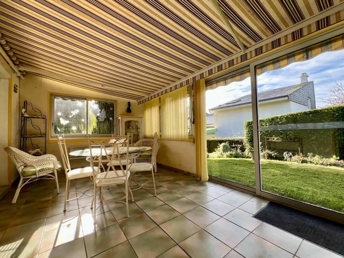 Bieville-Beuville, dans une rue très calme, pavillon de plain pied surélevé de 100 m² comprenant entrée, cuisine, séjour salon, véranda, dégagement, wc, salle d'eau, buanderie, trois chambres dont une avec salle d'eau. Sous-sol complet avec garage. Très beau terrain de 1.200 m² au calme, sans vis à vis et bien exposé.