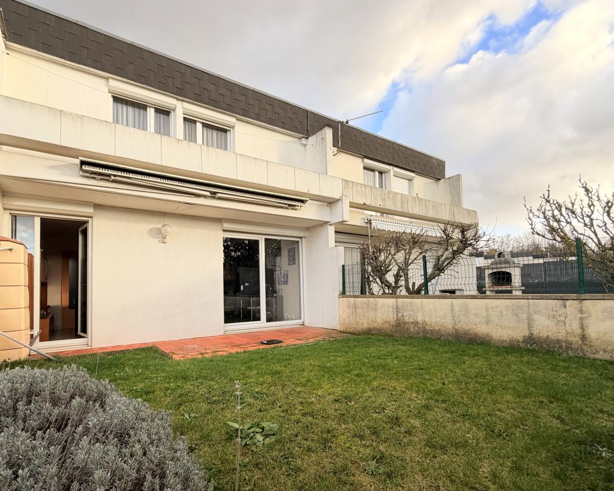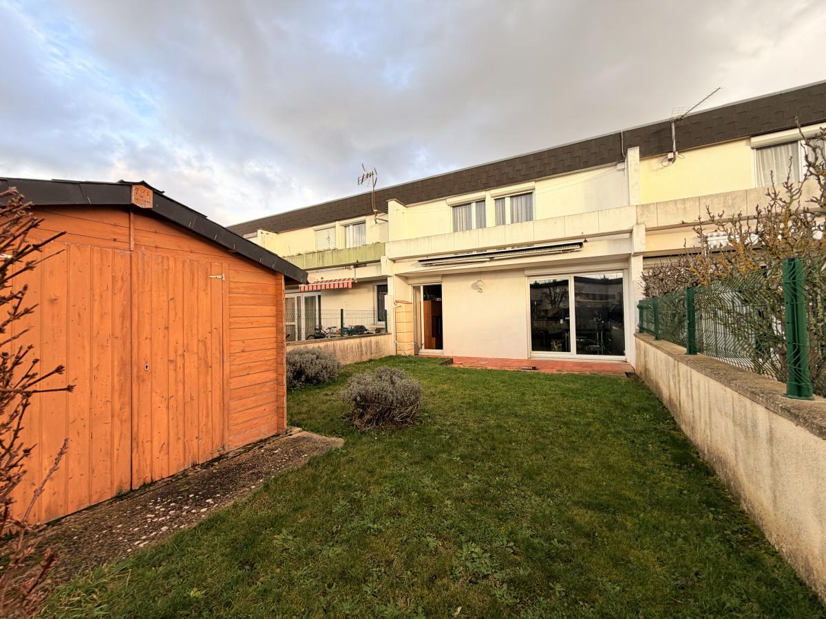 Rue des Acacias, maison mitoyenne de 83 m² comprenant entrée, buanderie, wc, cuisine, séjour-salon. A l'étage, palier, salle d'eau, dressing, trois chambres.
