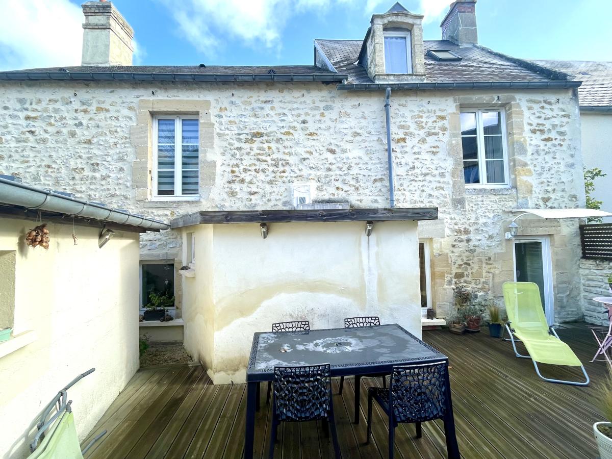 ** EXCLUSIVITÉ NOTAIRE ** Située à seulement 500 mètres de la place Saint-Patrice à Bayeux, cette charmante maison en pierre en très bon état général offre des prestations de qualité dans un environnement recherché. Au RDC, vous découvrirez une agréable pièce de vie comprenant une cuisine aménagée et équipée ouverte sur la salle à manger et comprenant un poêle à granulés, un salon lumineux, ainsi qu’une salle d’eau avec WC. Le premier étage dessert deux chambres, dont une avec salle d’eau et WC privatifs ainsi qu’un dressing, bureau. Au second étage, un atelier ou petite chambre ainsi qu’un grenier offrent un potentiel d’aménagement supplémentaire selon vos besoins (espace de travail, chambre, stockage…). Le bien bénéficie d’un jardin clos avec terrasse, idéal pour profiter des beaux jours en toute intimité. Annexes : Un garage complète l’ensemble, ainsi qu’une dépendance comprenant une chambre avec point d’eau et WC, parfaite pour recevoir ou envisager un usage locatif. Atouts : - Maison soignée, - Charme de l’ancien (pierres apparentes), - Proximité immédiate du centre-ville. Bien rare sur le secteur ! Pour plus d'informations ou pour organiser une visite, n'hésitez pas à me contacter : Gaëlle ROBERT au O7.6I.53.OI.45 Les informations sur les risques auxquels ce bien est exposé sont disponibles sur le site Géorisques : www.georisques.gouv.fr SAS GOUHIER-BOISSET-PEAN-THOUROUDE-FOUCAULT, contacter Gaëlle ROBERT au O7.6I.53.OI.45