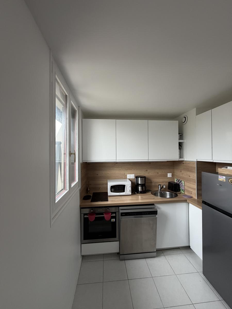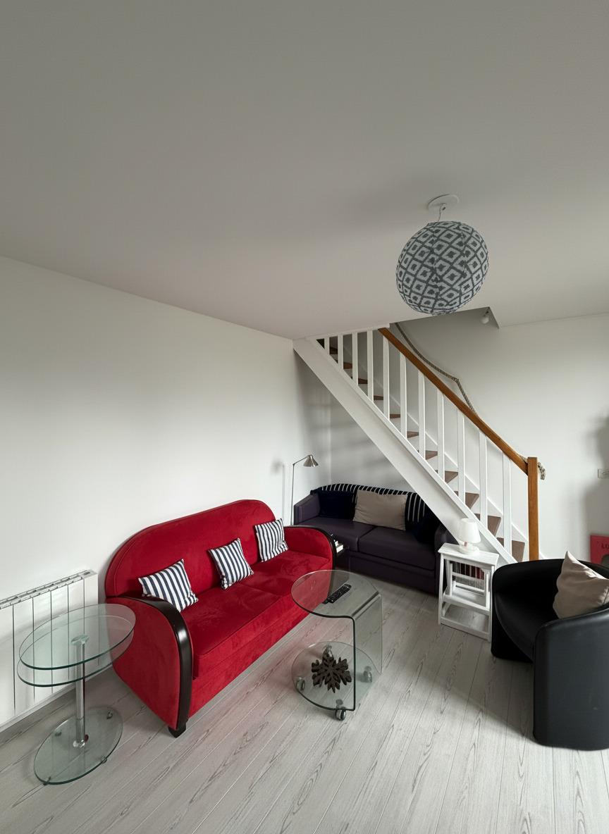 À vendre dans l’éventail de Cabourg, 2 pièces en duplex au 2ème et dernier étage avec terrasse, en parfait état.