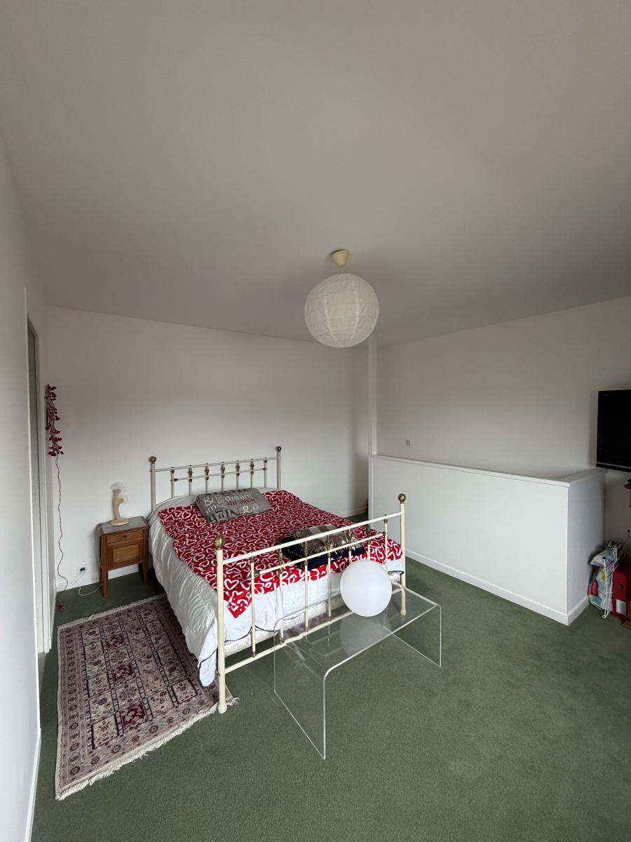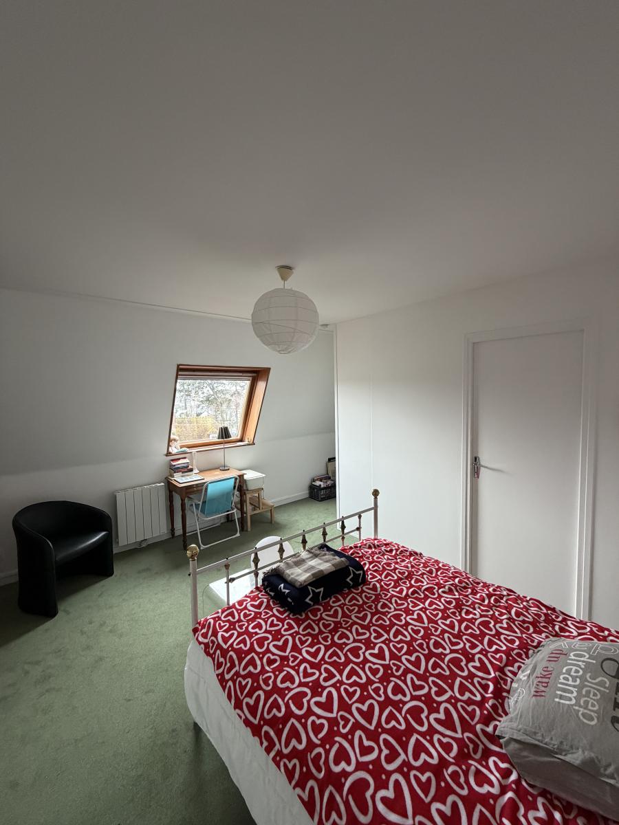 À l’étage, chambre à coucher avec rangements, salle d’eau avec WC