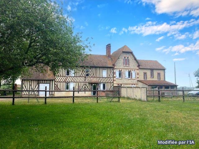 Caractère et authenticité : ensemble de bâtiments en briques et colombages typiques du Pays d’Auge.