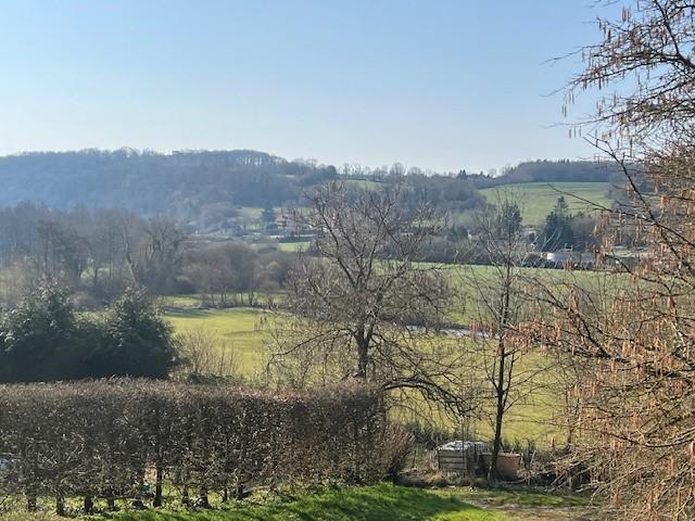 Orbec proche centre ville à pied, vue sur la vallée, une maison à usage d’habitation construite en colombages et couverte en petites tuiles comprenant :