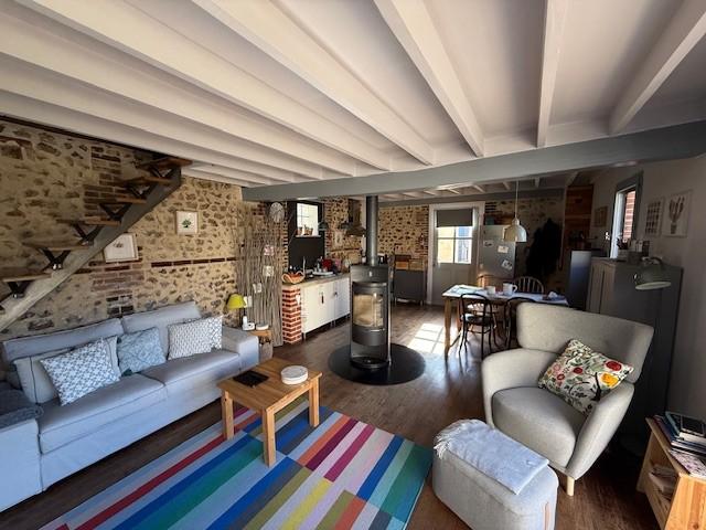 St Pierre de Cernières, dans une vallée avec rivière, jolie maison atypique joliment rénovée aux prestations de qualités construite en briques et couvert en ardoises comprenant : - Au rez-de-chaussée : salle-salon avec poêle à bois et cuisine ouverte aménagée et équipée. - Au 1er étage : palier-bibliothèque, chambre avec placards, salle de bains avec baignoire balnéo, wc, douche, double vasques. - Au 2ème étage : grande chambre living. Garage, cellier et bûcher. L'ensemble sur 230m². Montant maximum des honoraires pratiqués par l'Office