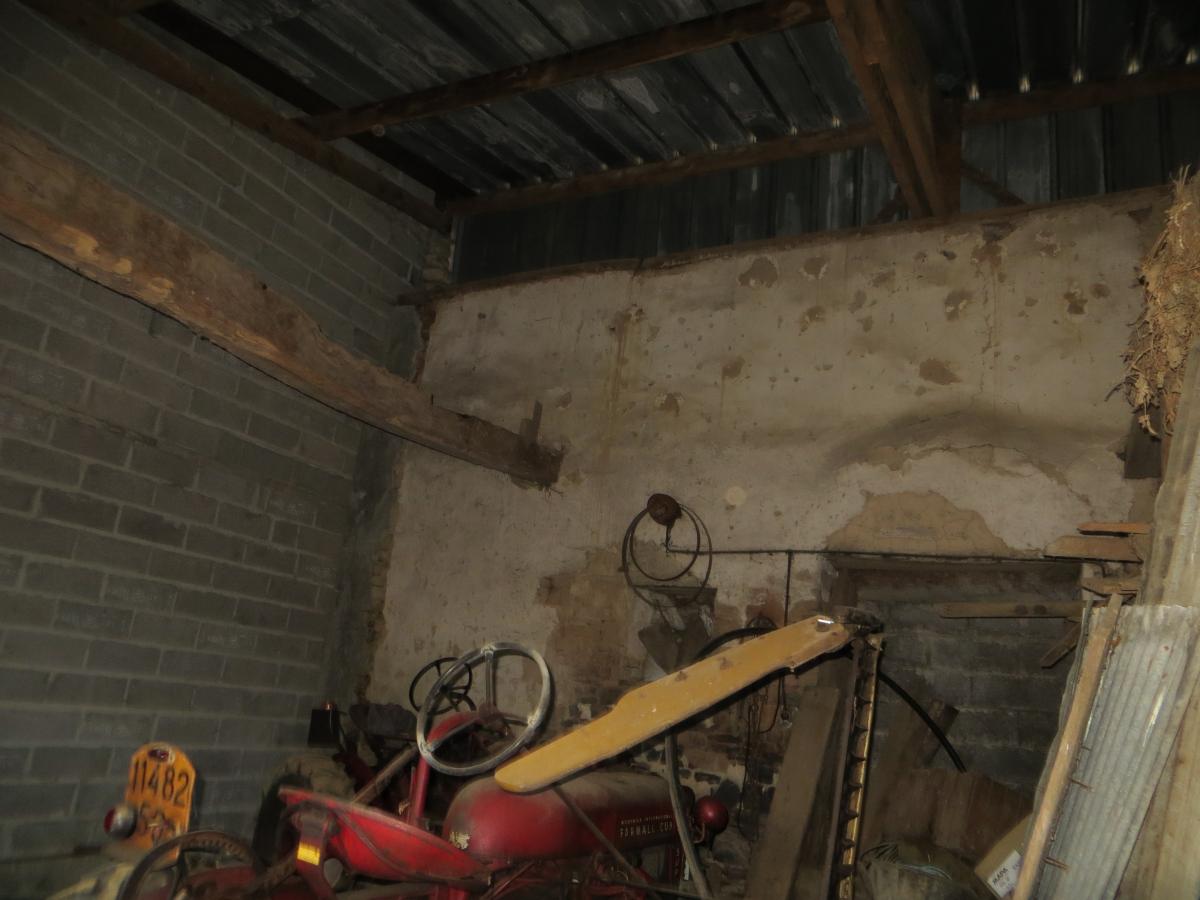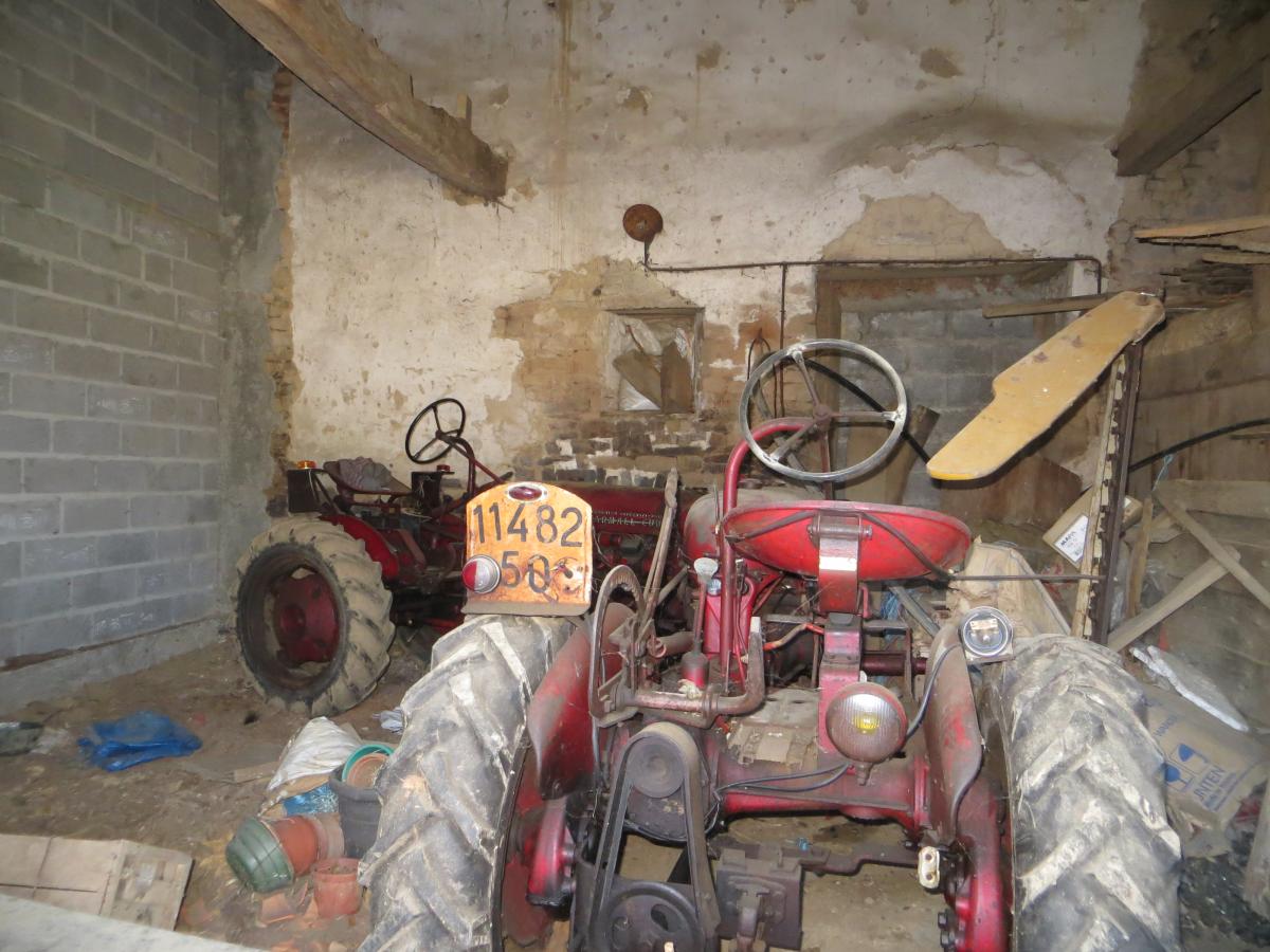 UN BATIMENT en pierres et torchis couvert en bac acier à usage de cave, ancienne étable, garage et grenier au-dessus.