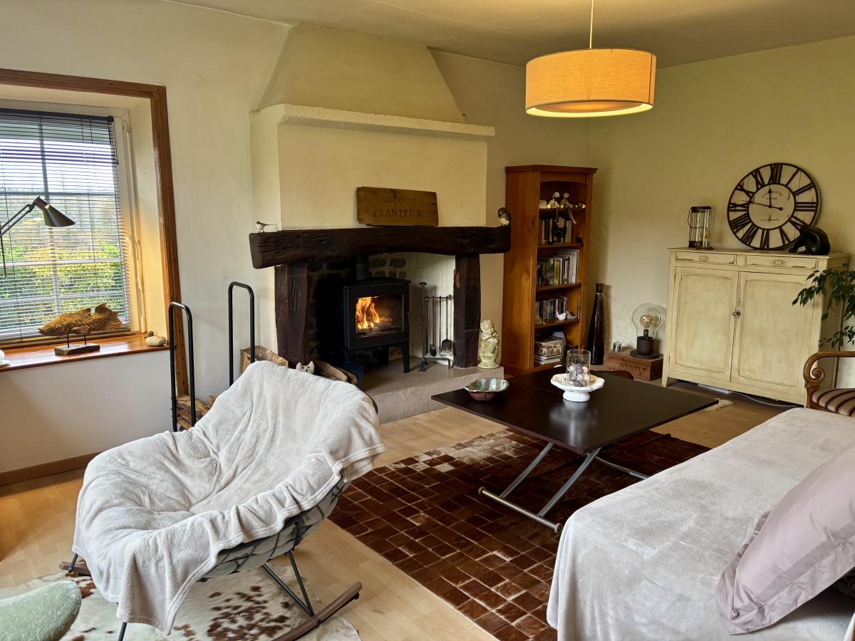 La maison principale, bien entretenue, se compose au rez-de-chaussée d’une cuisine ouverte sur la salle à manger, donnant accès à une terrasse, d’un salon équipé d’un poêle à bois et d’une salle de bains.