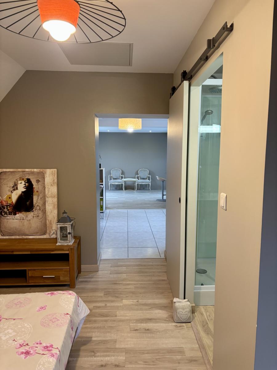 À l’étage, se trouvent trois chambres, dont une disposant d’une salle d’eau privative.