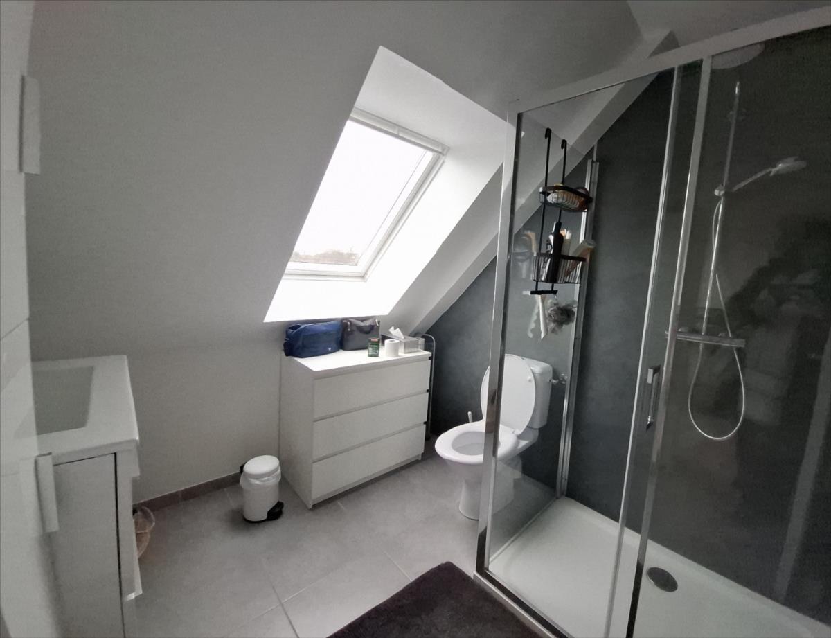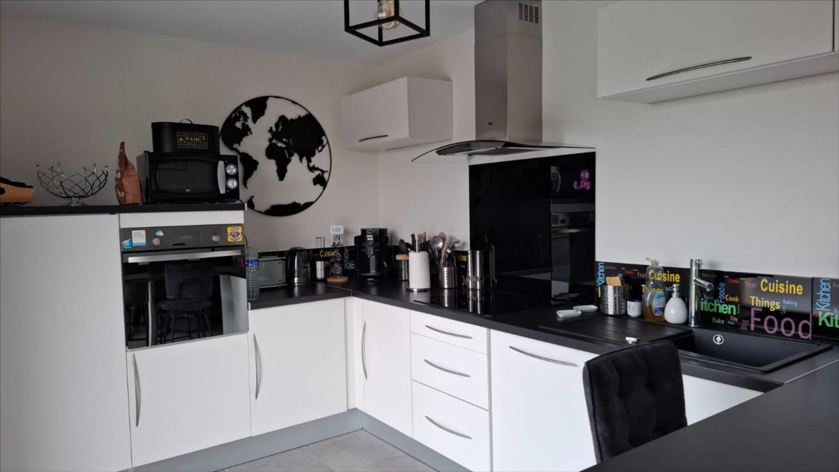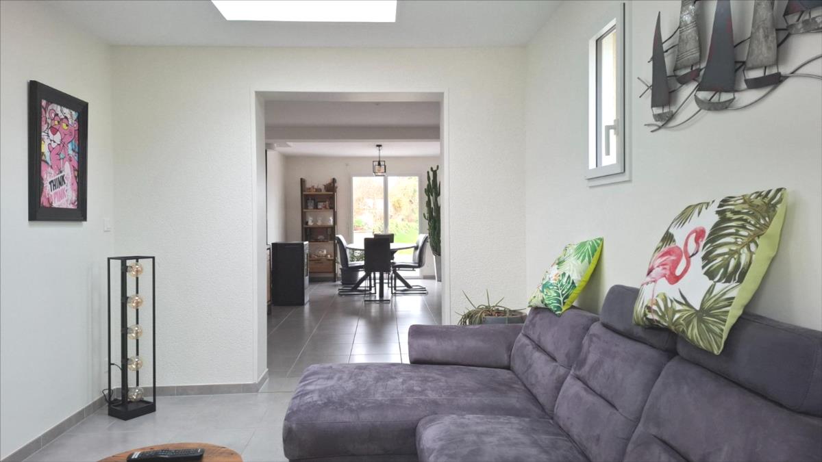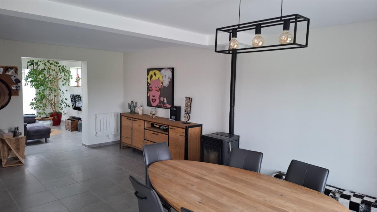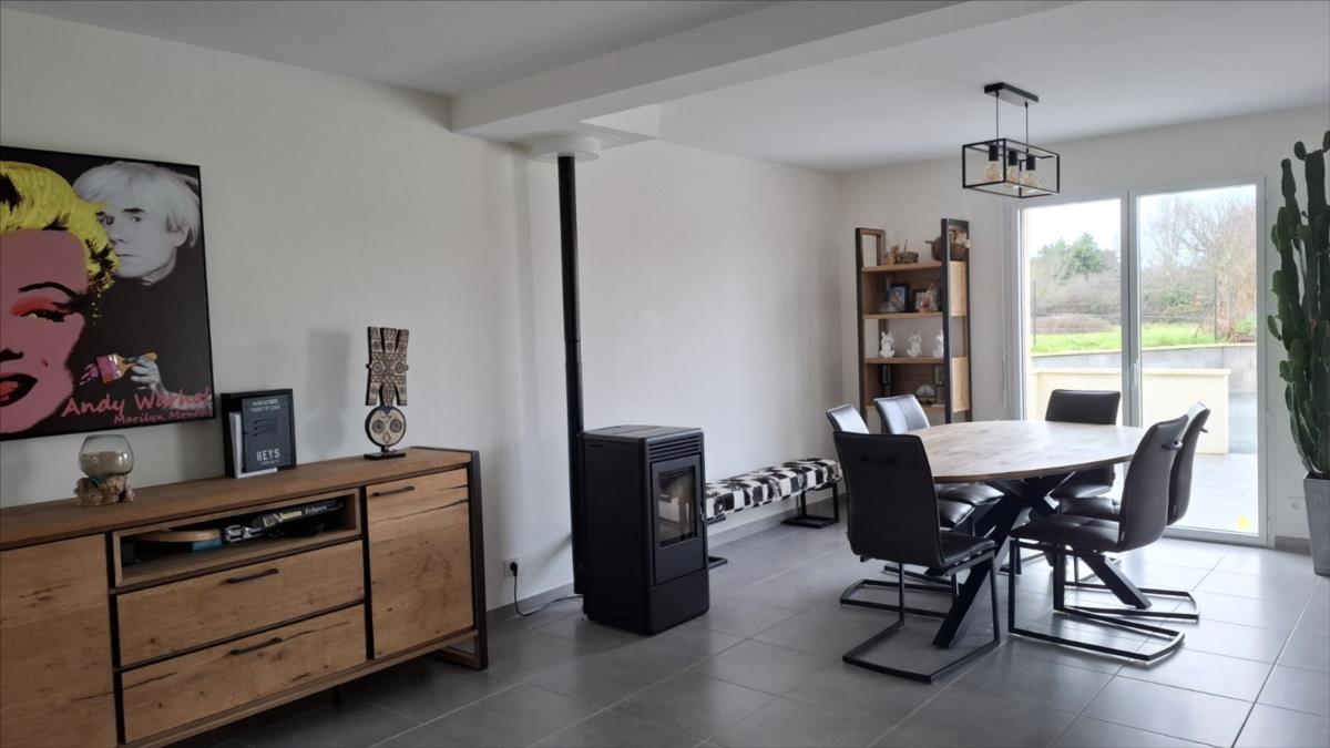 A proximité de la mer, des commerces et des écoles et collèges :Pavillon récent (2014) couvert en ardoise, mitoyen par le garage, comprenant :. au rez-de-chaussée : entrée, séjour avec en retour cuisine ouverte aménagée et équipée, salon, WC.. A l'étage : palier desservant : trois chambres, salle d'eau avec WC.Garage attenant.Cour bitumée devant, jardin sur l'arrière.Le tout pour une surface cadastrale de 958m².