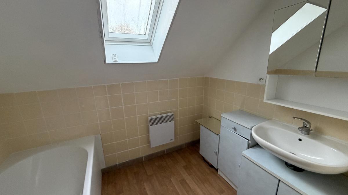 A l'étage : palier, deux chambres, salle de bains, WC, autre pièce