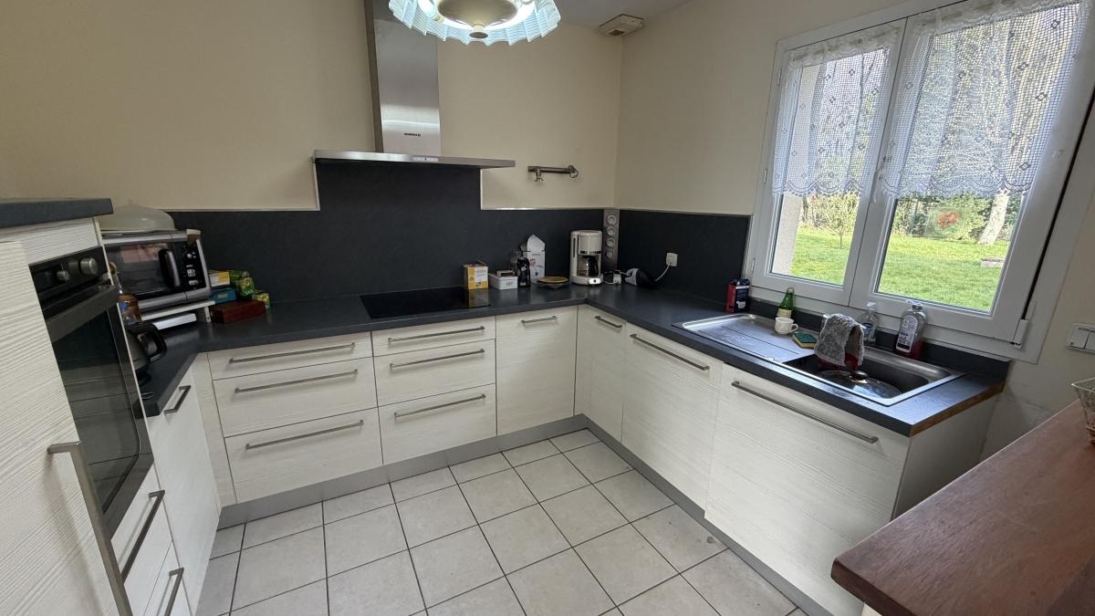 Au rez-de-chaussée : entrée sur séjour avec cuisine ouverte aménagée et équipée et salon (le tout environ 60m²), trois chambres, salle de douche, WC, buanderie et arrière-cuisine avec grenier au-dessus.