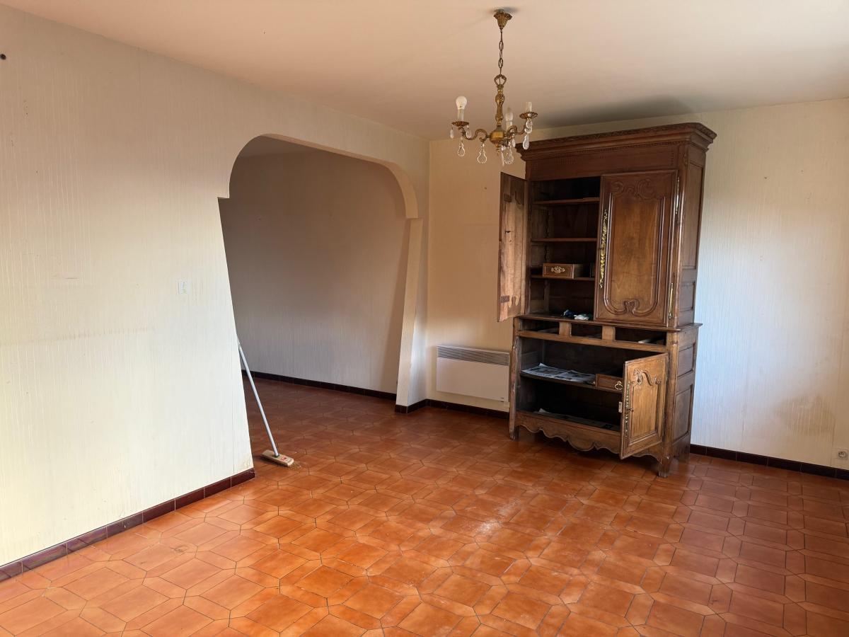 Etage : entrée, cuisine donnant sur la terrasse, séjour salon (conduit de cheminée) avec accès sur la terrasse, dégagement, trois chambres, salle de bains, WC ;