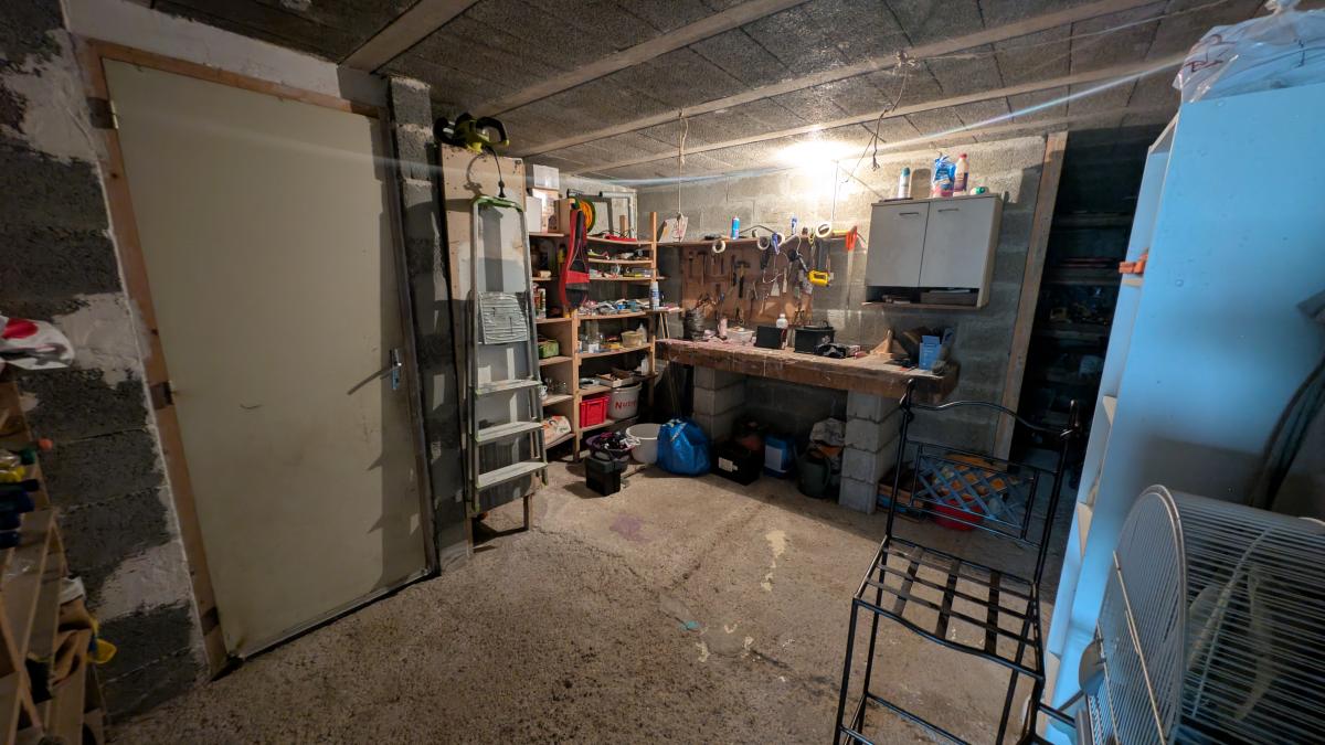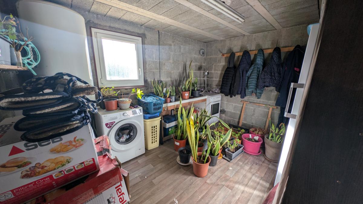 Au rez-de-jardin : garage, buanderie, atelier, cave et appentis.