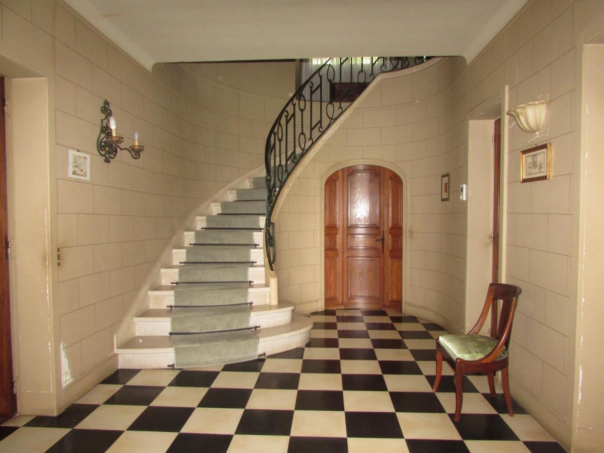 - Au-rez-de-chaussée : entrée avec grand escalier, séjour-salon avec cheminée, cuisine aménagée, bureau, 2 chambres, salle d'eau, WC. ;