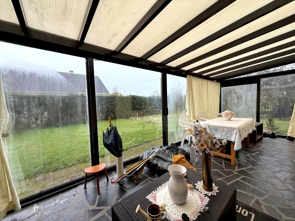 entrée, cuisine aménagée 11 m², séjour-salon avec cheminée 30m² donnant sur véranda non chauffée expo ouest 18m².