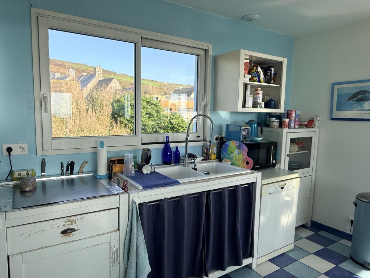 ref VENTE INTERACTIVE 1309 - LES PIEUX - SCIOTOT - L'Etude Napoléon Tourlaville vous propose de découvrir ce pavillon ossature bois aux atouts incroyables, situé face à la baie de Sciotot ! Cette maison construite en 2010, dépaysante et au charme indéniable, comprend 2 niveaux: - au rez-de-chaussée vous trouverez: une entrée avec dressing, desservant 4 chambres spacieuses avec vue mer, dont l'une dotée d'un dressing et d'une salle d'eau privative, autre salle d'eau avec douche à l'italienne, WC et buanderie - à l'étage, offrant une vue imprenable sur la mer: le séjour-salon avec poêle à bois baigné de lumière grâce aux grandes baies inondant cet espace familial ouvert sur la cuisine et la salle à manger. Une cinquième chambre et une terrasse sur pilotis de laquelle la vue est à couper le souffle complètent ce niveau ! Autre WC à cet étage. A l'extérieur, le jardin avec sa terrasse exposée Sud-Ouest est un véritable havre de paix. Faible consommation énergétique compensée également par des panneaux photovoltaïques. La mer est à 100 mètres !! L’anse de Sciotot, est le spot normand des surfeurs et des amateurs de char à voile. à 35 min de Naval Group Arsenal de Cherbourg en Cotentin à 20 min d’Orano La Hague à 5 min de l’EPR de Flamanville à 20 min de Carteret ⚖️ Modalités de la Vente Interactive Ce bien est proposé à la vente via un système d'offres interactives. Principe : Les acquéreurs potentiels déposent leurs offres sur une plateforme sécurisée. Visites : Sur rendez-vous uniquement. Toutes nos annonces sur https://www.etudenapoleon.notaires.fr/