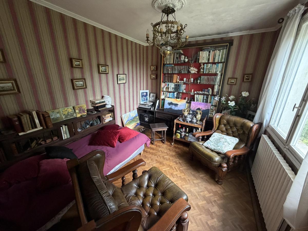 - Au premier étage: entrée, salle à manger avec cuisine ouverte aménagée, séjour avec cheminée et petit salon attenant (possibilité de chambre supplémentaire), dégagement avec placards, deux chambres, salle de bains, WC.