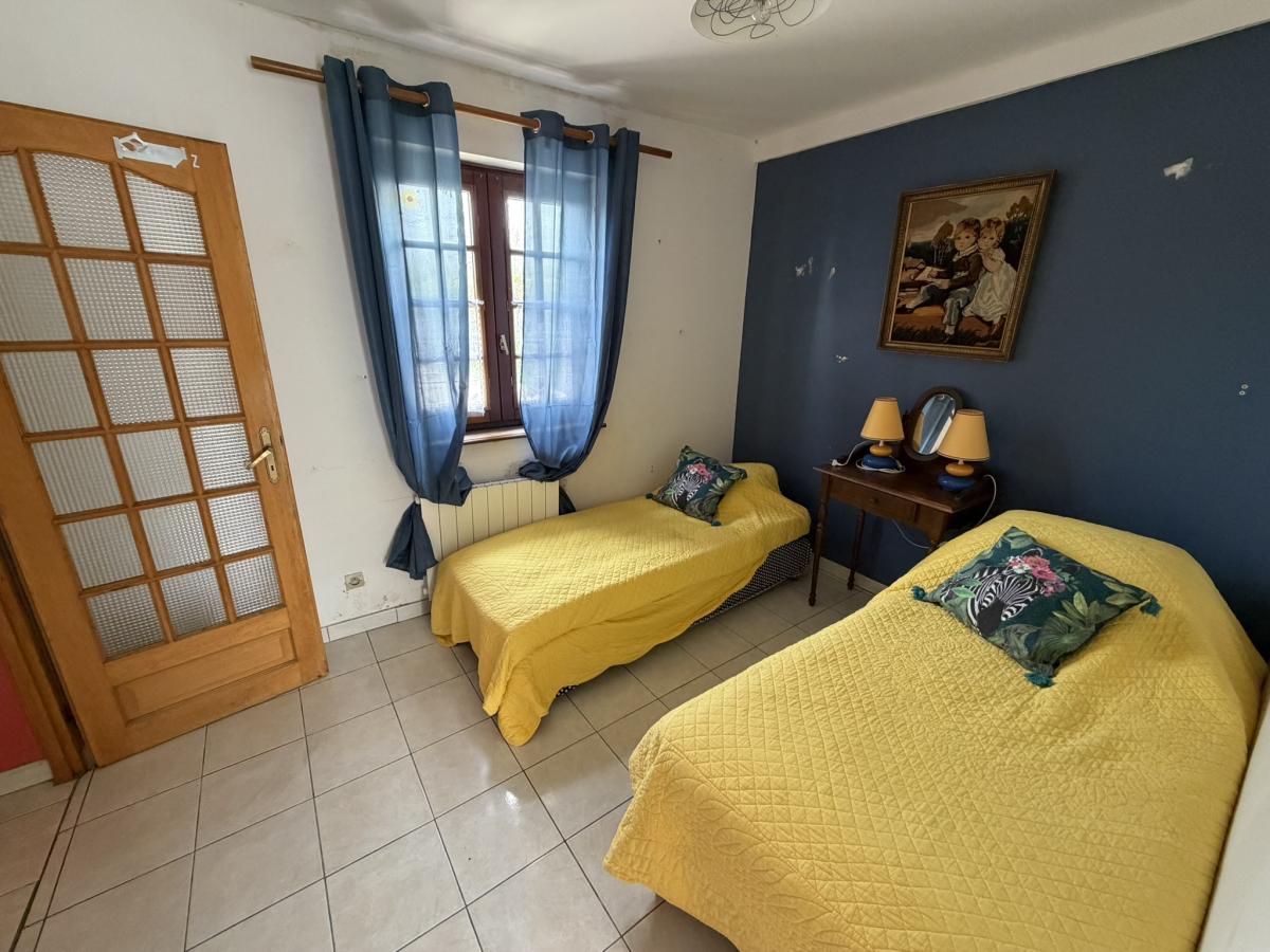 - Au rez de chaussée: entrée, séjour avec poêle à granulés et cuisine ouverte aménagée, WC, salle d'eau deux chambres.