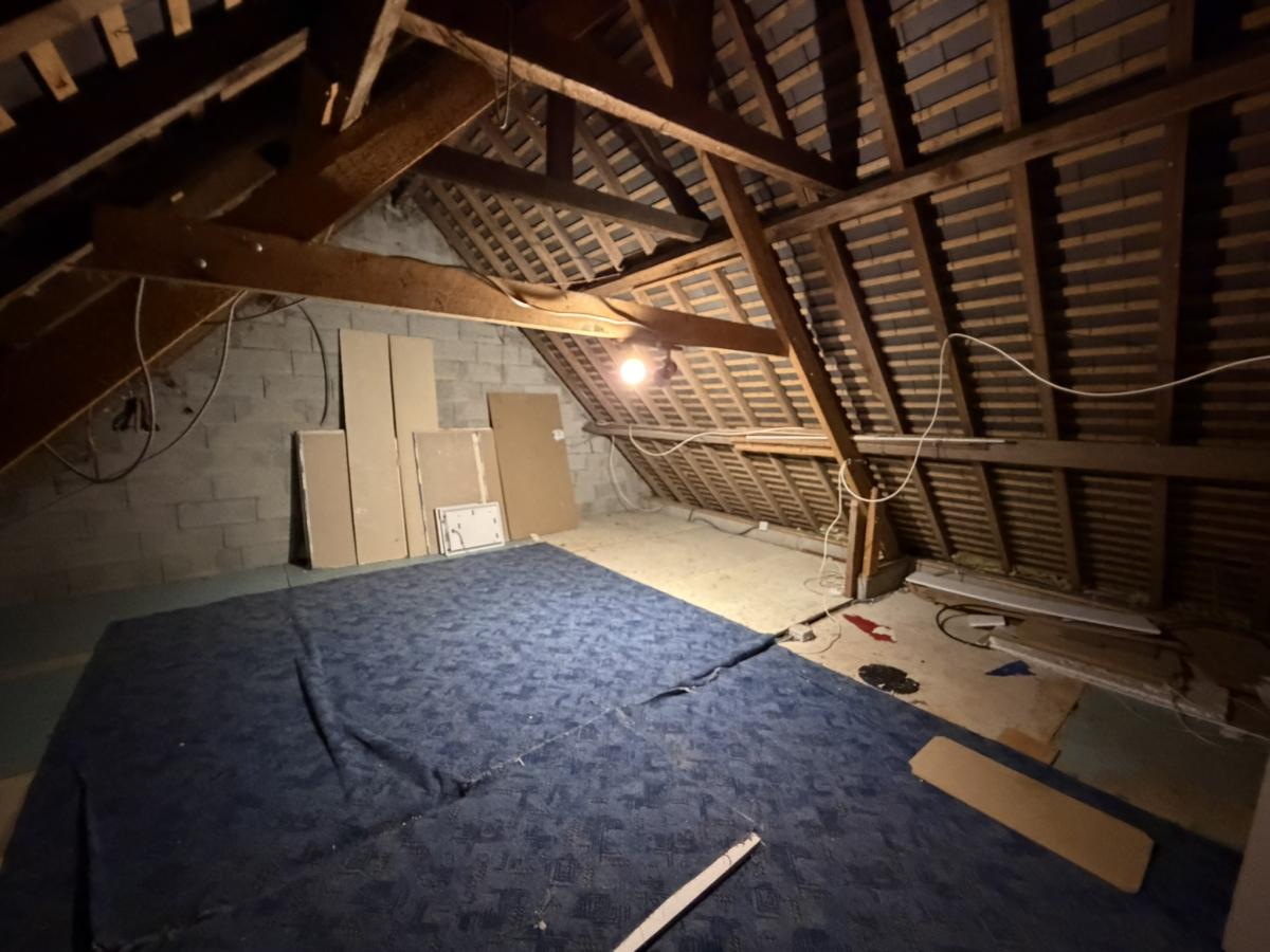 - A l'étage: une grande chambre en mezzanine et un grand grenier aménageable de 40 m² au sol.