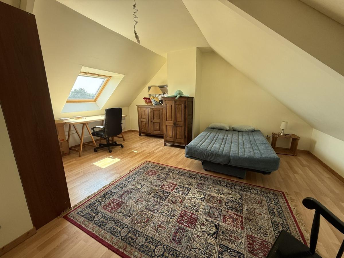 - A l'étage: palier avec coin-bureau, salle de bains avec WC + douche + baignoire, deux chambres dont une avec placards.