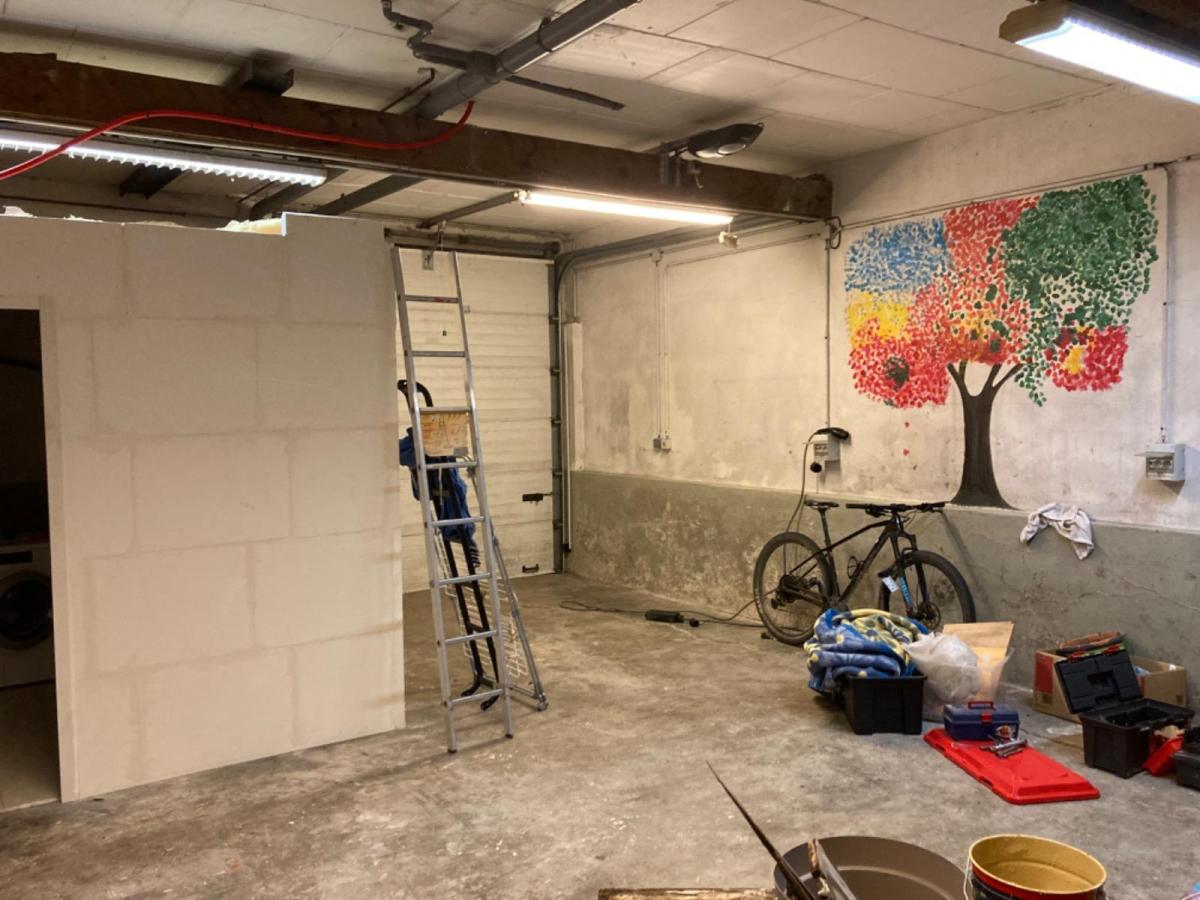 RDC : entrée, une chambre avec salle d'eau privative (douche/vasque/WC) - vaste garage avec coin buanderie
