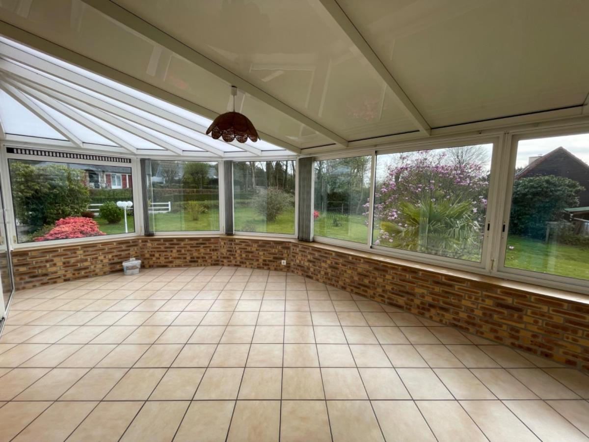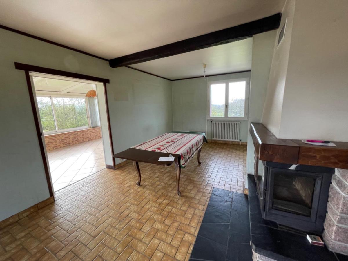 dc surélevé : entrée/dégagement, cuisine, séjour salon avec cheminée insert ouvrant sur grande véranda, 2 chambres, salle d’eau et WC.