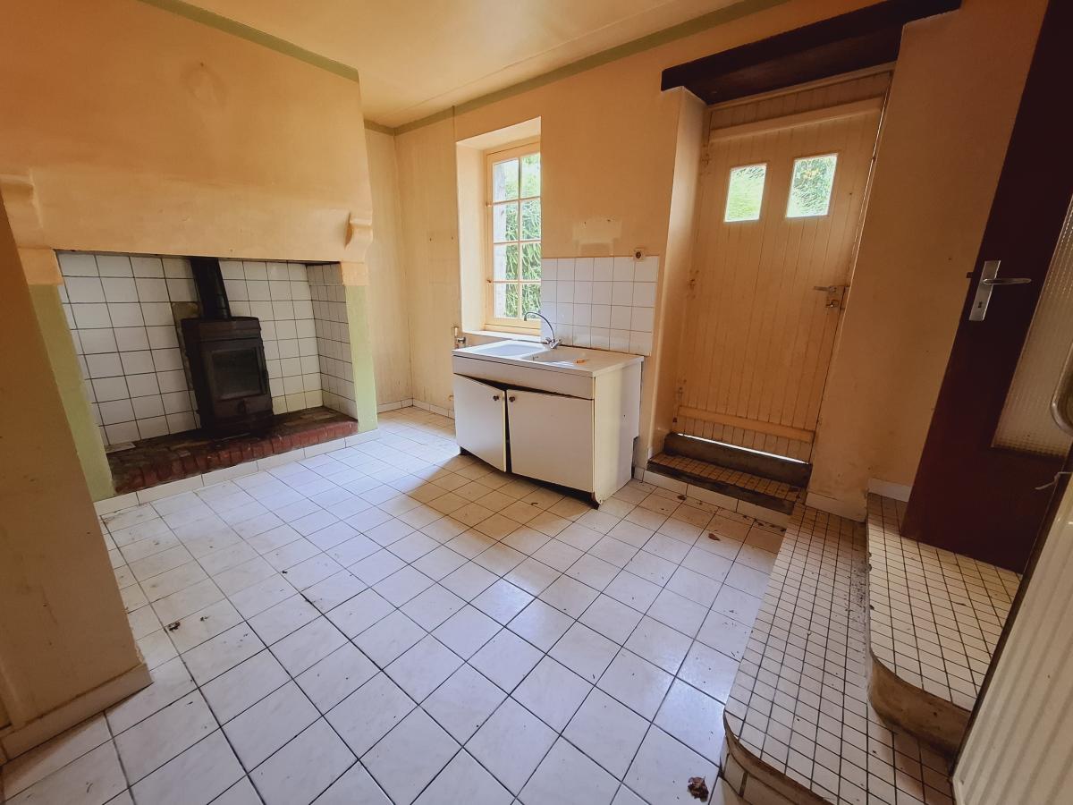 - Au rez-de-chaussée : entrée/couloir, cuisine, salon, arrière-cuisine/buanderie avec poêle à bois, salle d'eau avec toilette.