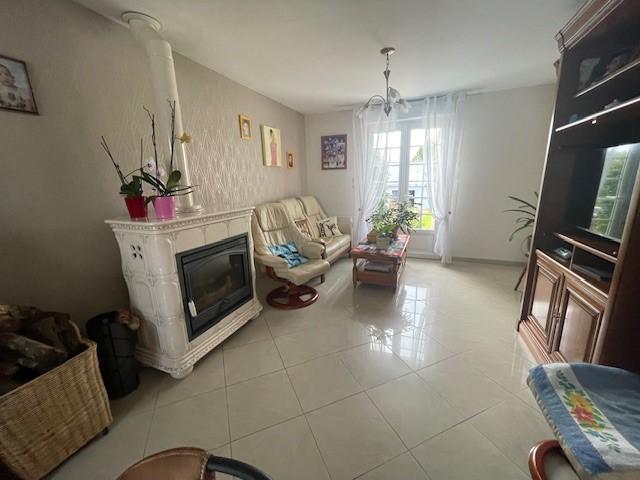 RDC: entrée, séjour salon avec poêle à bois, cuisine aménagée et équipée, dgt, salle d'eau, WC, 2 chambres (dont une aménagée en buanderie avec placards).