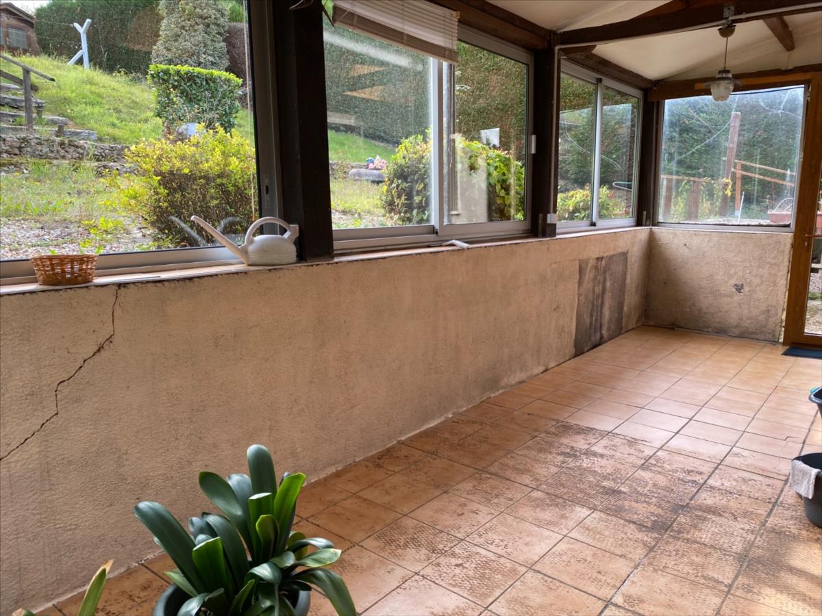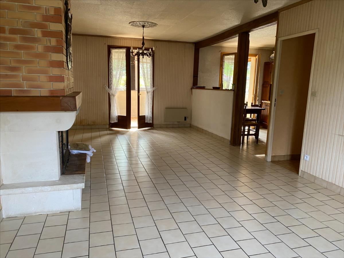 - au rez de jardin: véranda, cuisine aménagée et équipée (four, plaque et réfrigérateur) ouverte sur séjour-salon avec cheminée-insert, couloir, 3 chambres, salle de bain complète, wc.