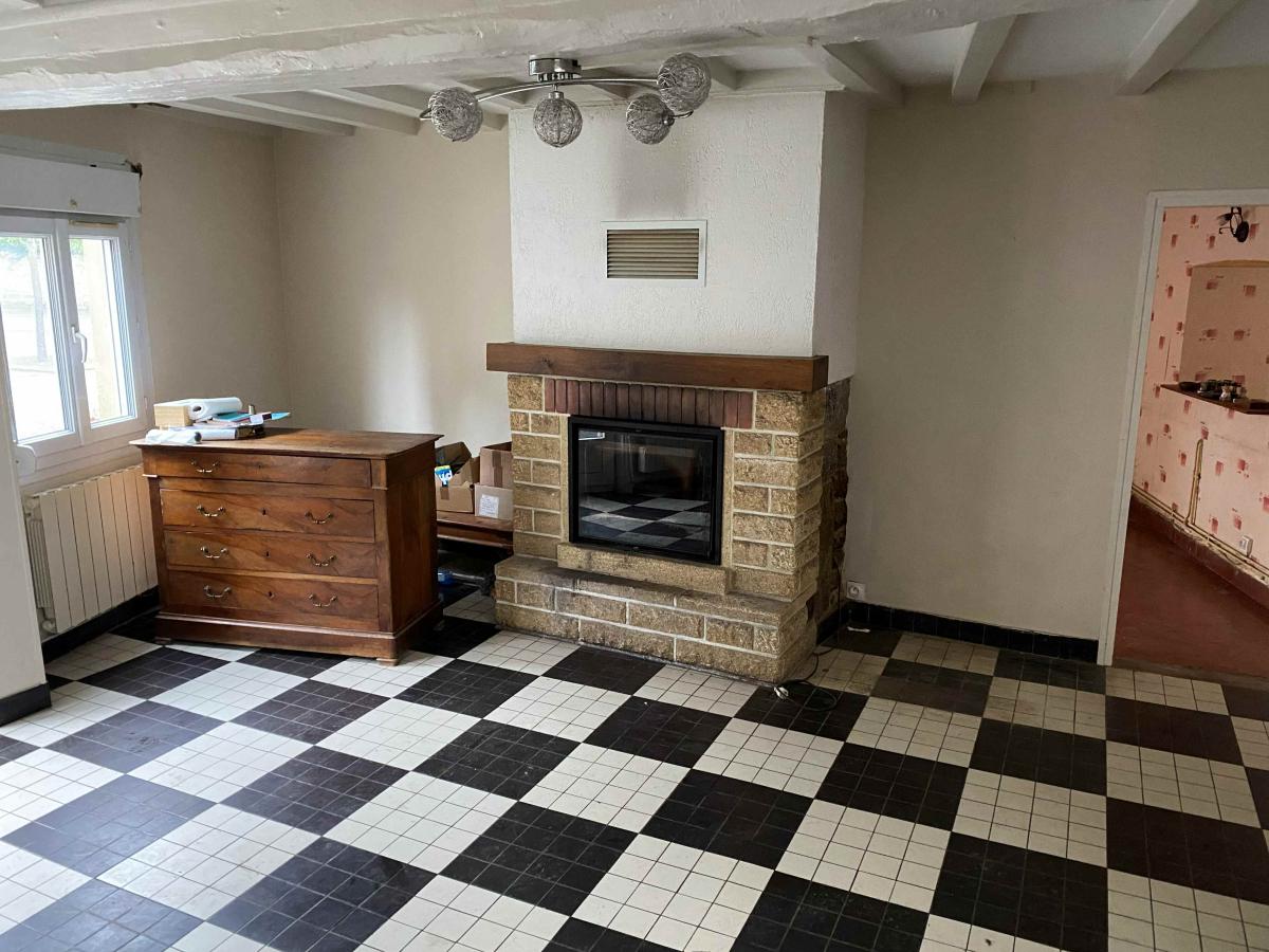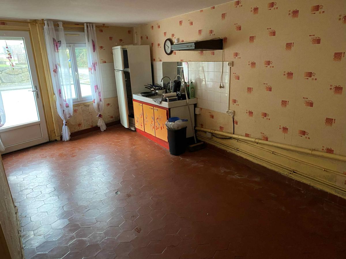 LE MENIL DE BRIOUZE: Maison de village d'environ 100m² habitable sur 394 m² de terrain, comprenant au rez-de-chaussée, cuisine, salle à manger avec cheminée, buanderie, salle d’eau avec wc, une chambre, à l’étage couloir, trois chambres, wc, terrain en dépendant avec un bâtiment en bois et un préau, chauffage électrique, tout à l'égout, double vitrage, prix 85 500€ honoraires de négociation à la charge du vendeur.