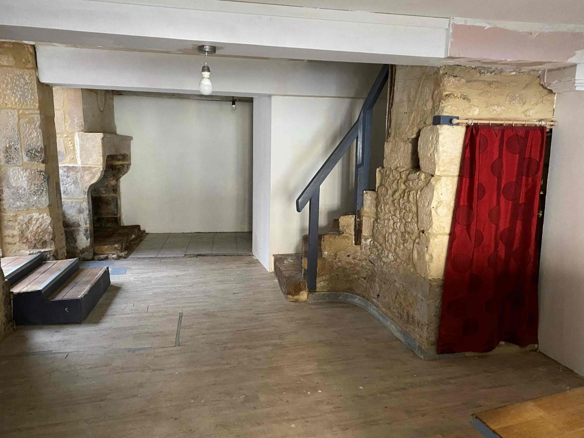 FALAISE Maison de ville construite en pierres, couverte en tuiles et ardoises, comprenant au rez-de-chaussée, séjour, salon, wc, cuisine aménagée, débarras, à l’étage palier deux chambres, salle d’eau avec wc, grenier sur l’ensemble, double vitrage, chauffage électrique