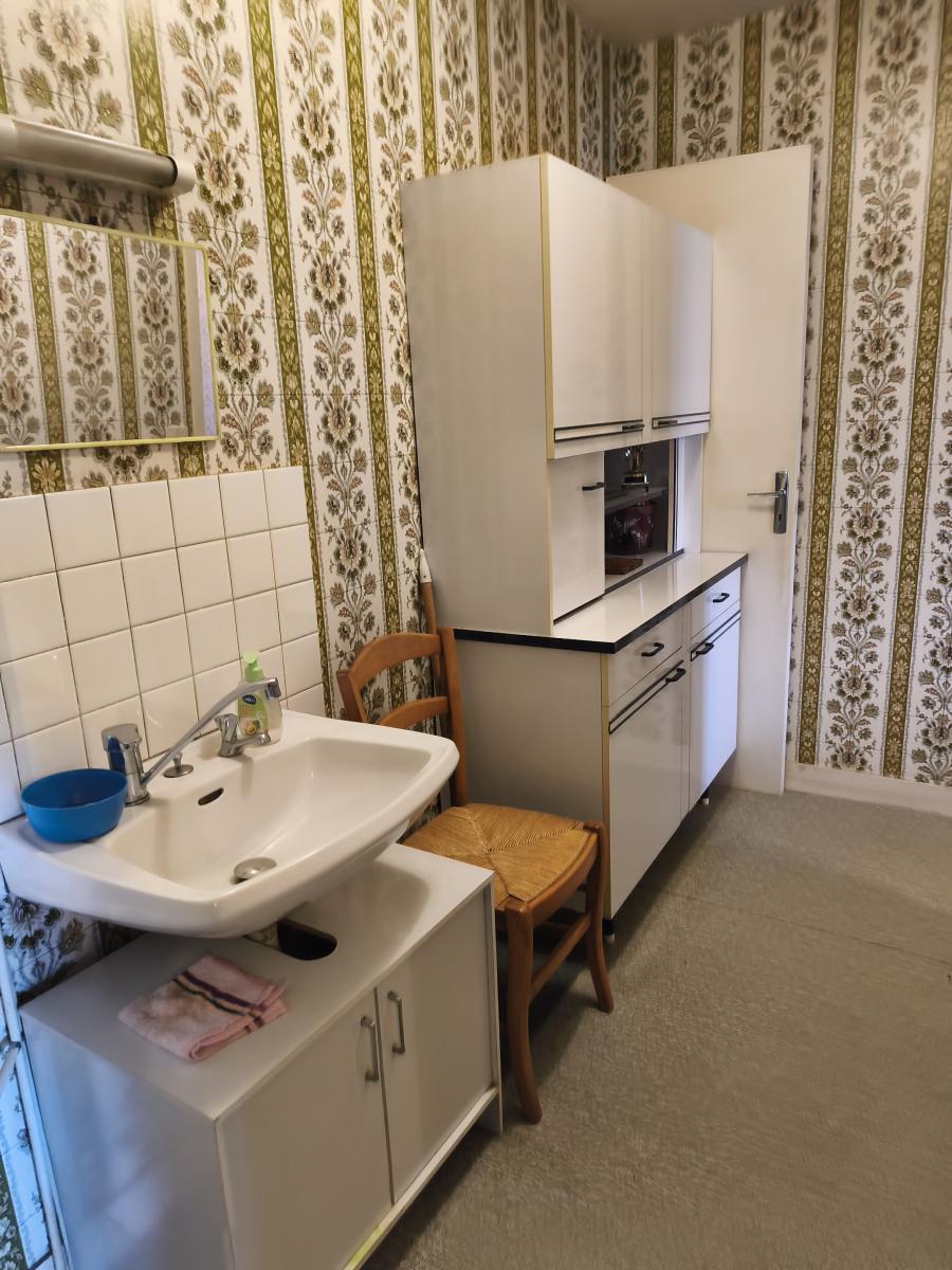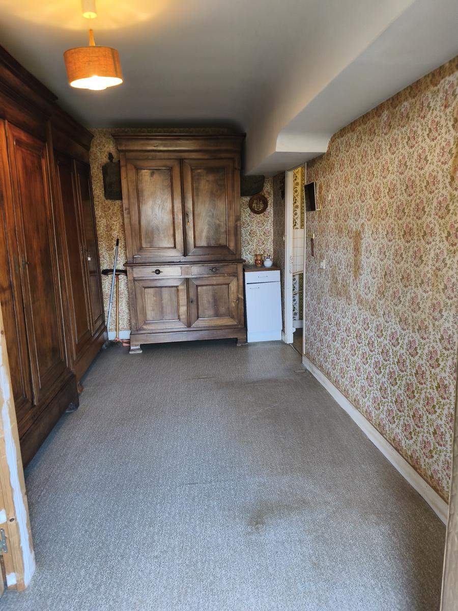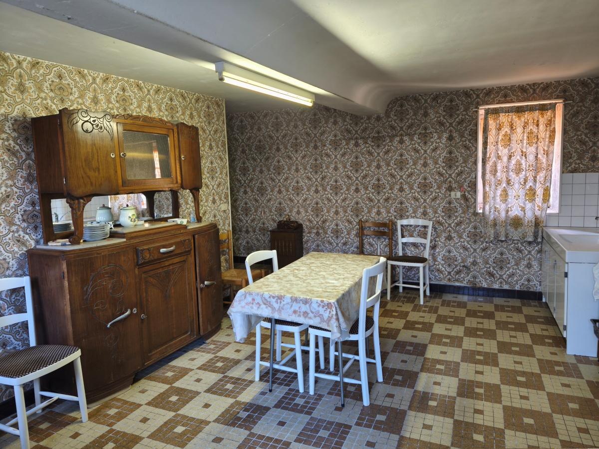 Le rez-de-chaussée comprend une cuisine avec poêle à bois, cave attenante avec wc,