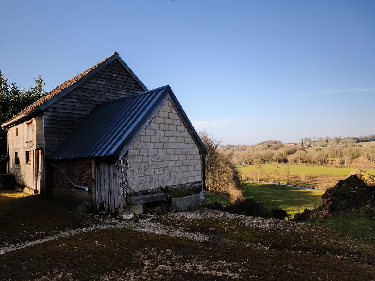 Dans un hameau, avec vue sur la campagne vallonnée, ensemble immobilier composé d'une maison de 4 pièces principales et diverses dépendances sur 2.000 m² de terrain :