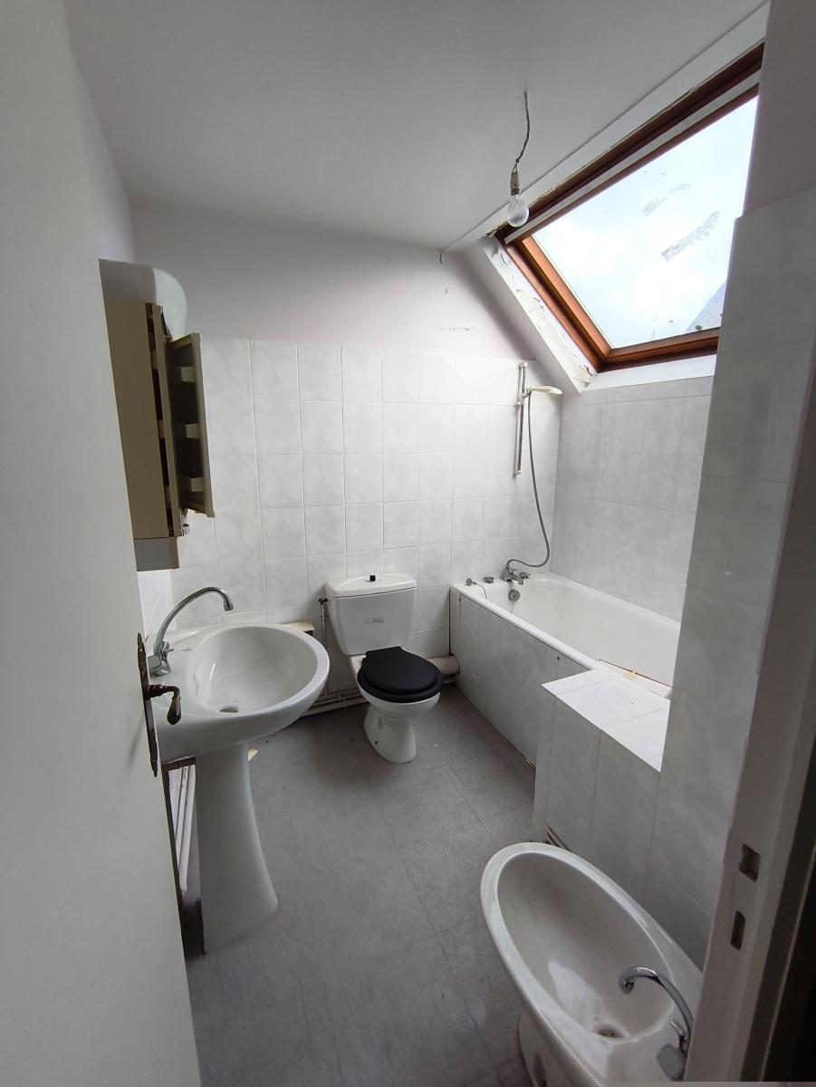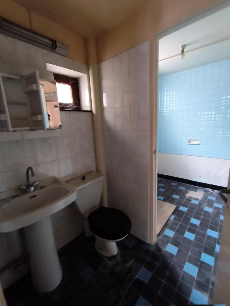 Le rez-de-chaussée est composé d'une entrée, séjour, 1 chambre, cabinet de toilette et débarras,