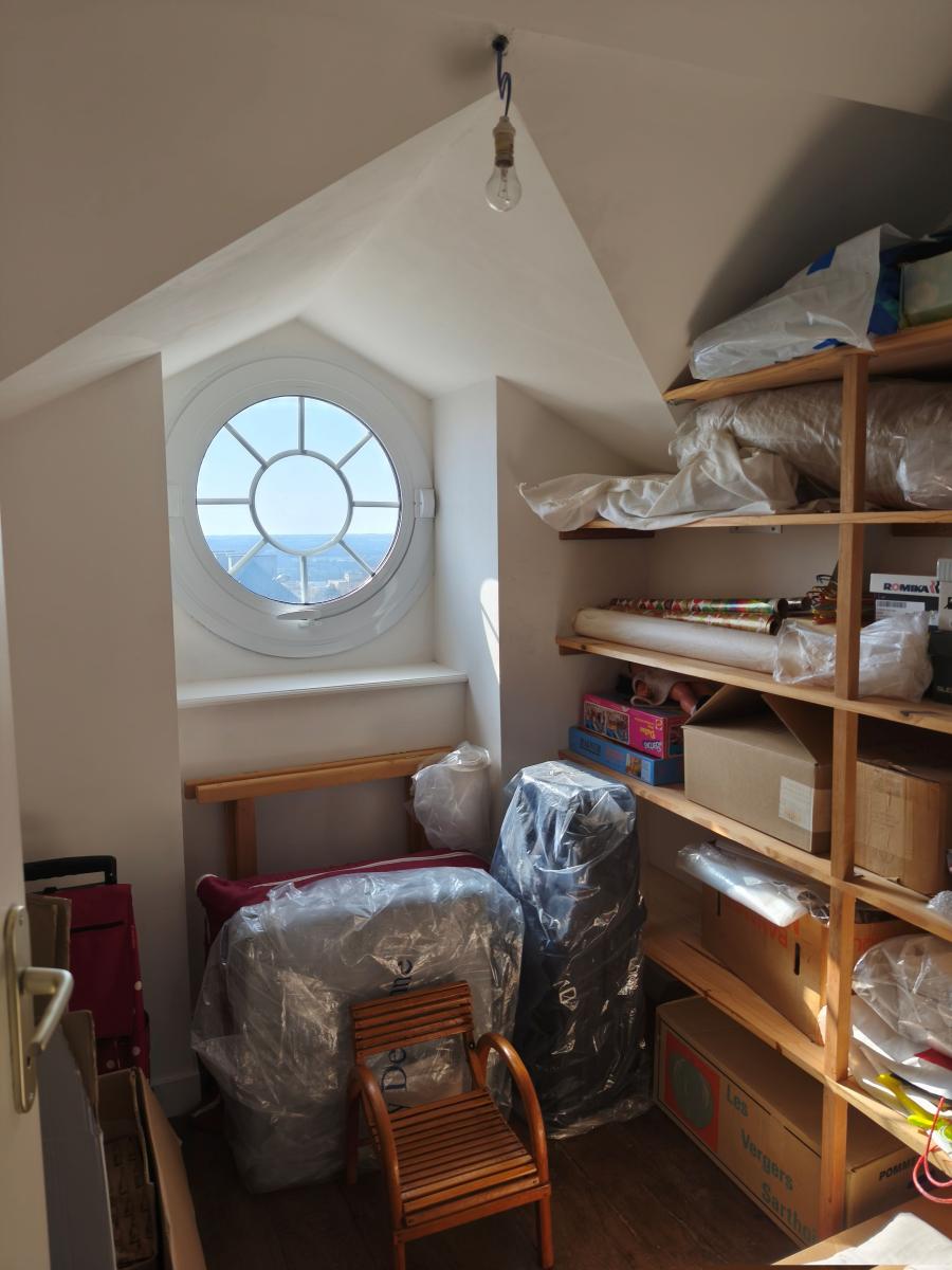 Le 2ème étage, sous combles, comprend une chambre, une salle de bains avec wc, et 2 pièces.